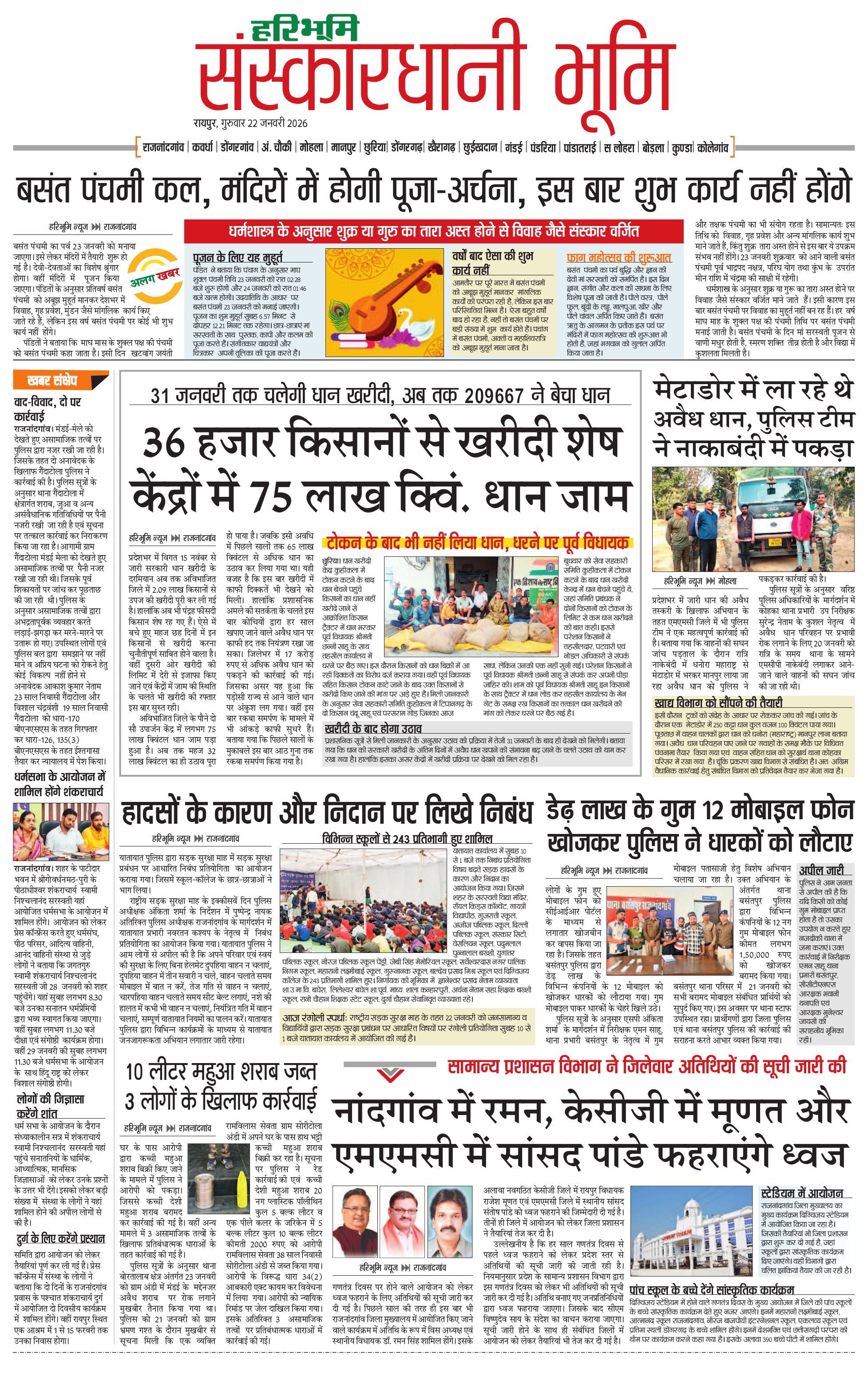 संस्कारधानी भूमि - 22 Jan 2026 - - Page 1