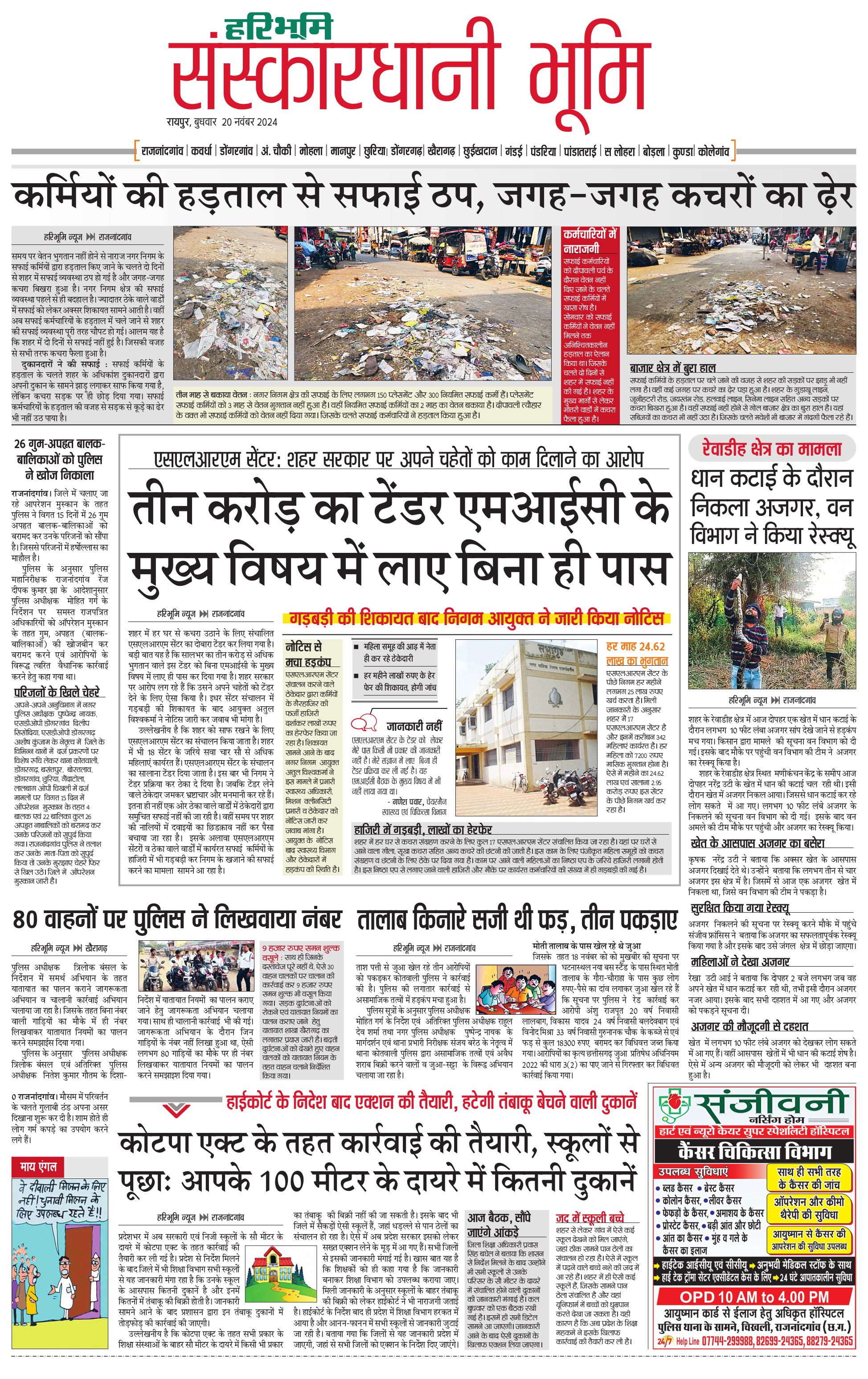 संस्कारधानी भूमि - 20 Nov 2024 - - Page 1