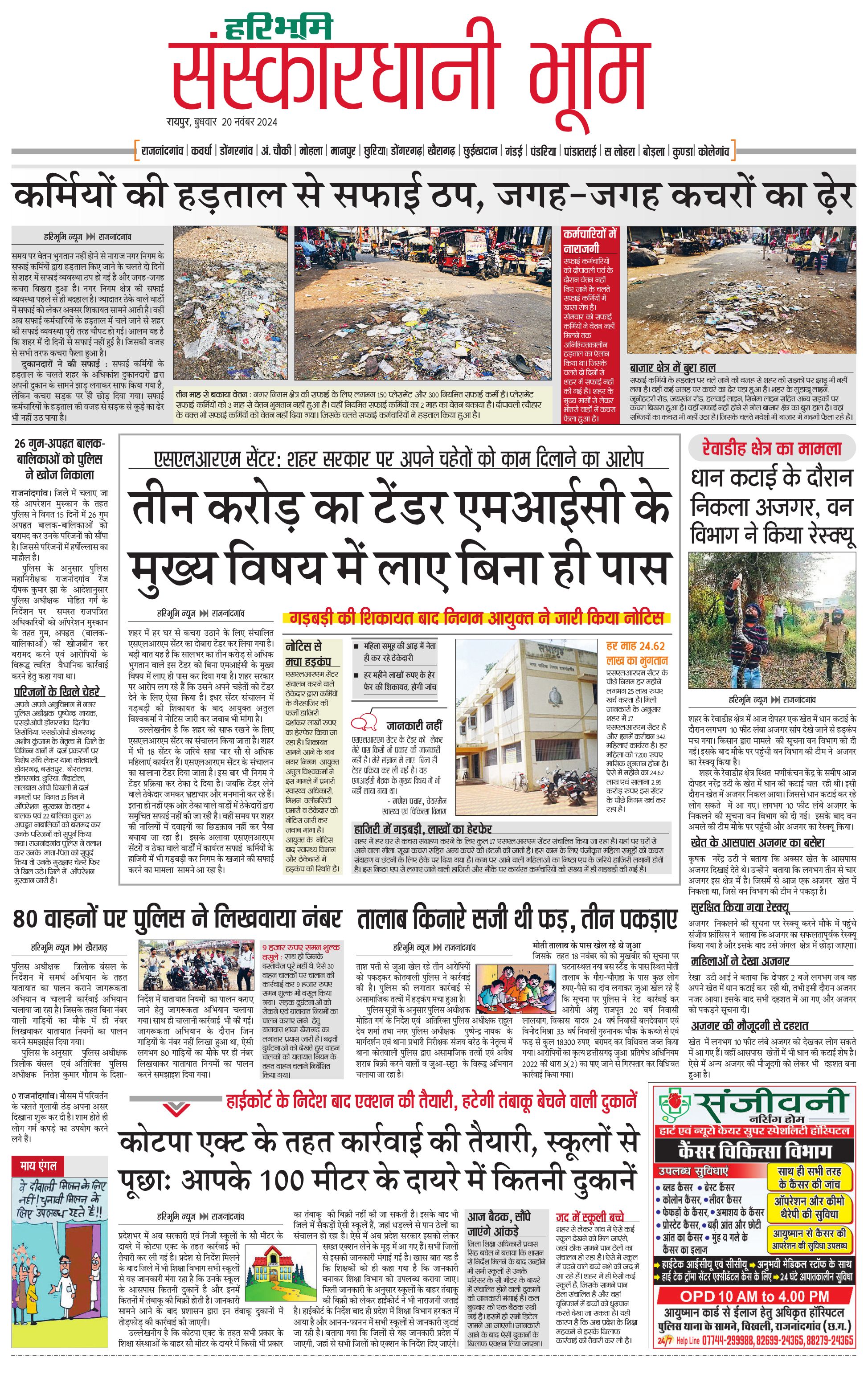 संस्कारधानी भूमि - 21 Nov 2024 - - Page 1