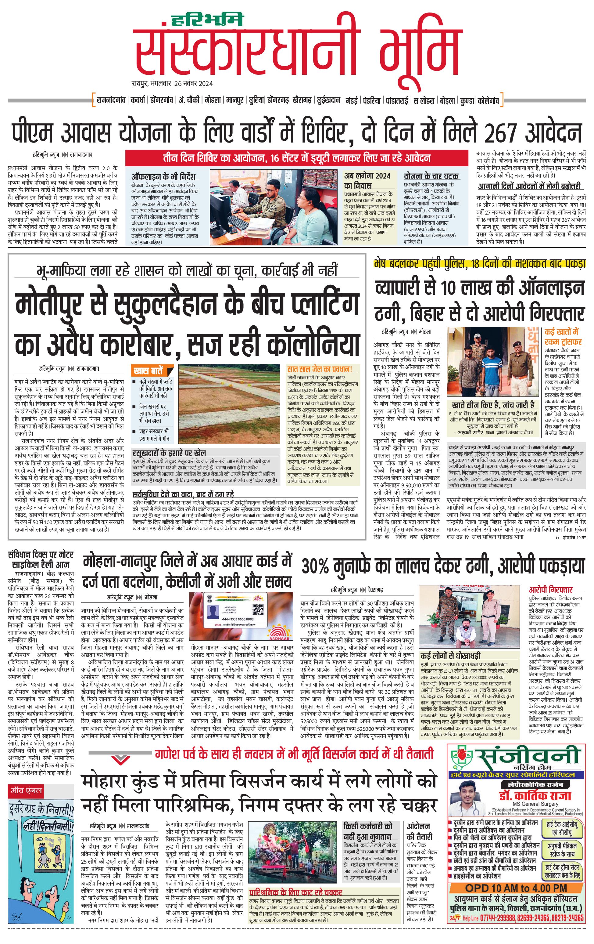 संस्कारधानी भूमि - 26 Nov 2024 - - Page 1