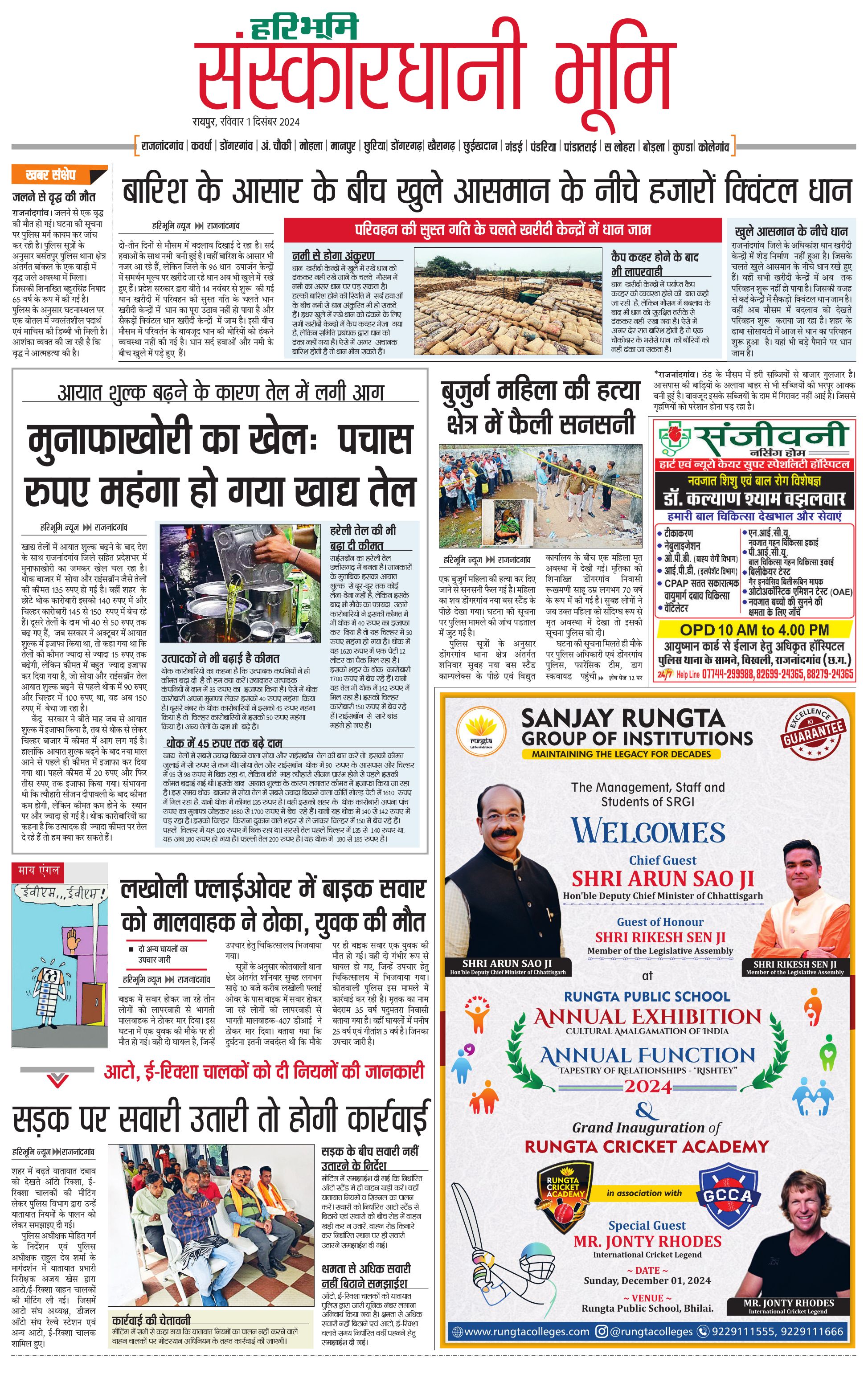 संस्कारधानी भूमि - 01 Dec 2024 - - Page 1