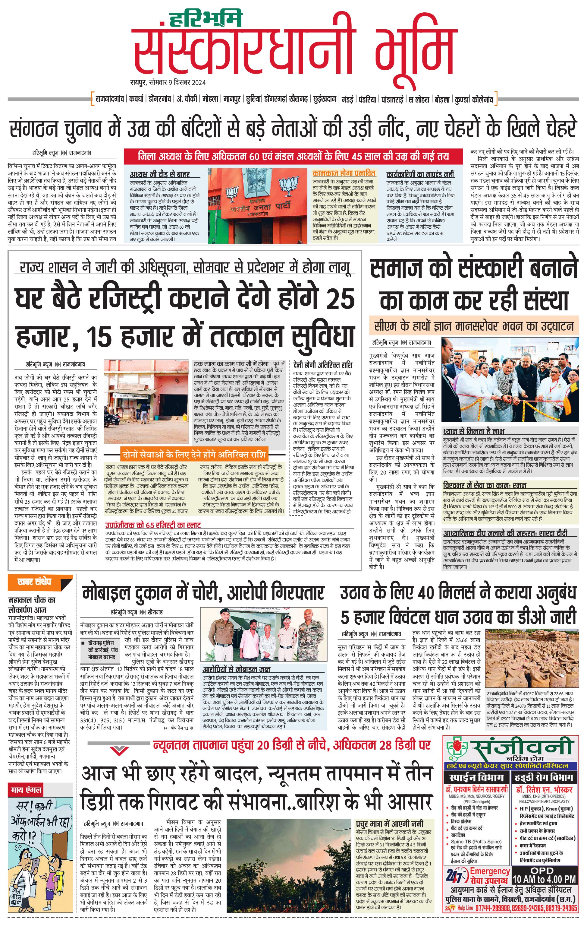 संस्कारधानी भूमि - 09 Dec 2024 - - Page 1