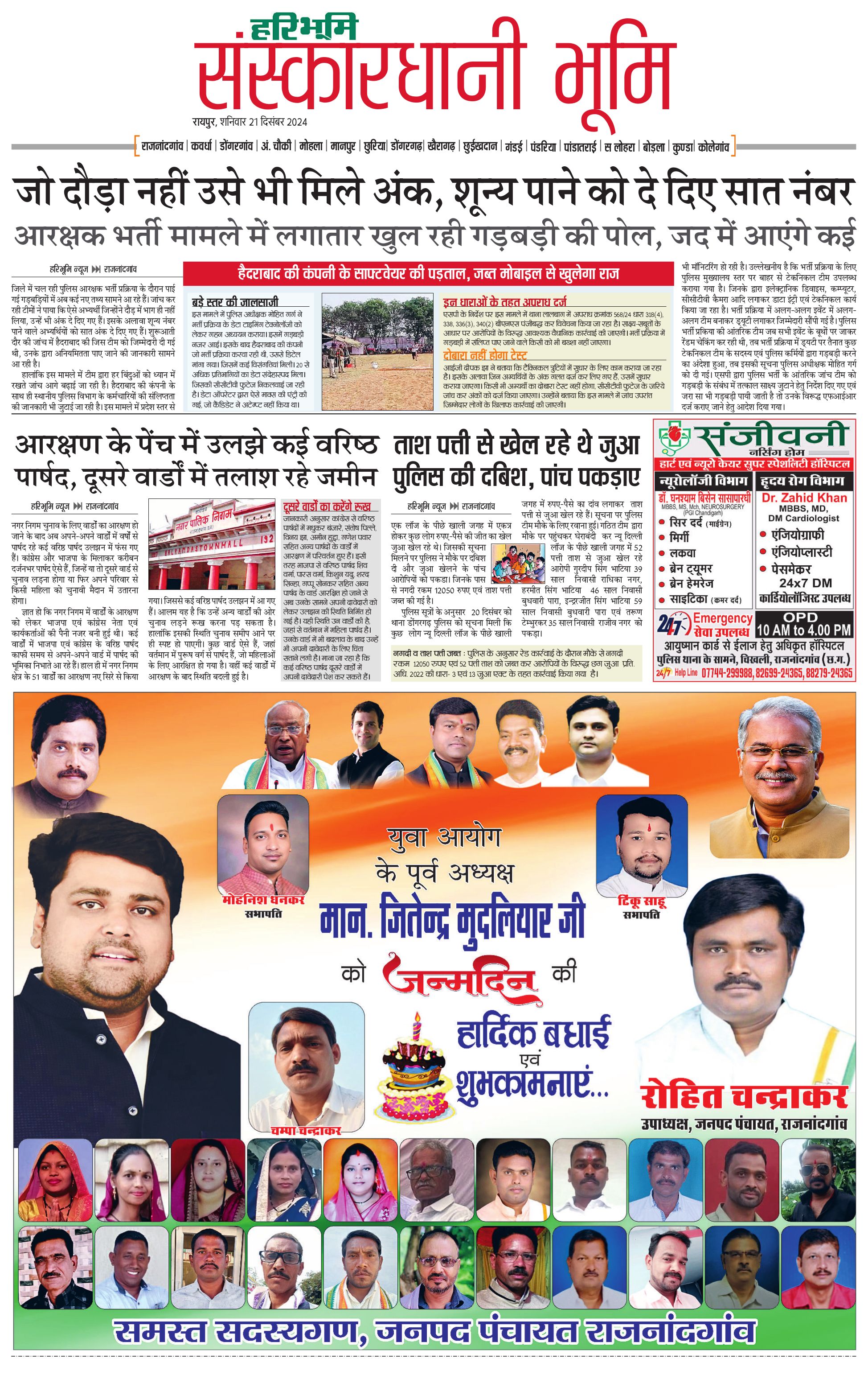 संस्कारधानी भूमि - 21 Dec 2024 - - Page 1