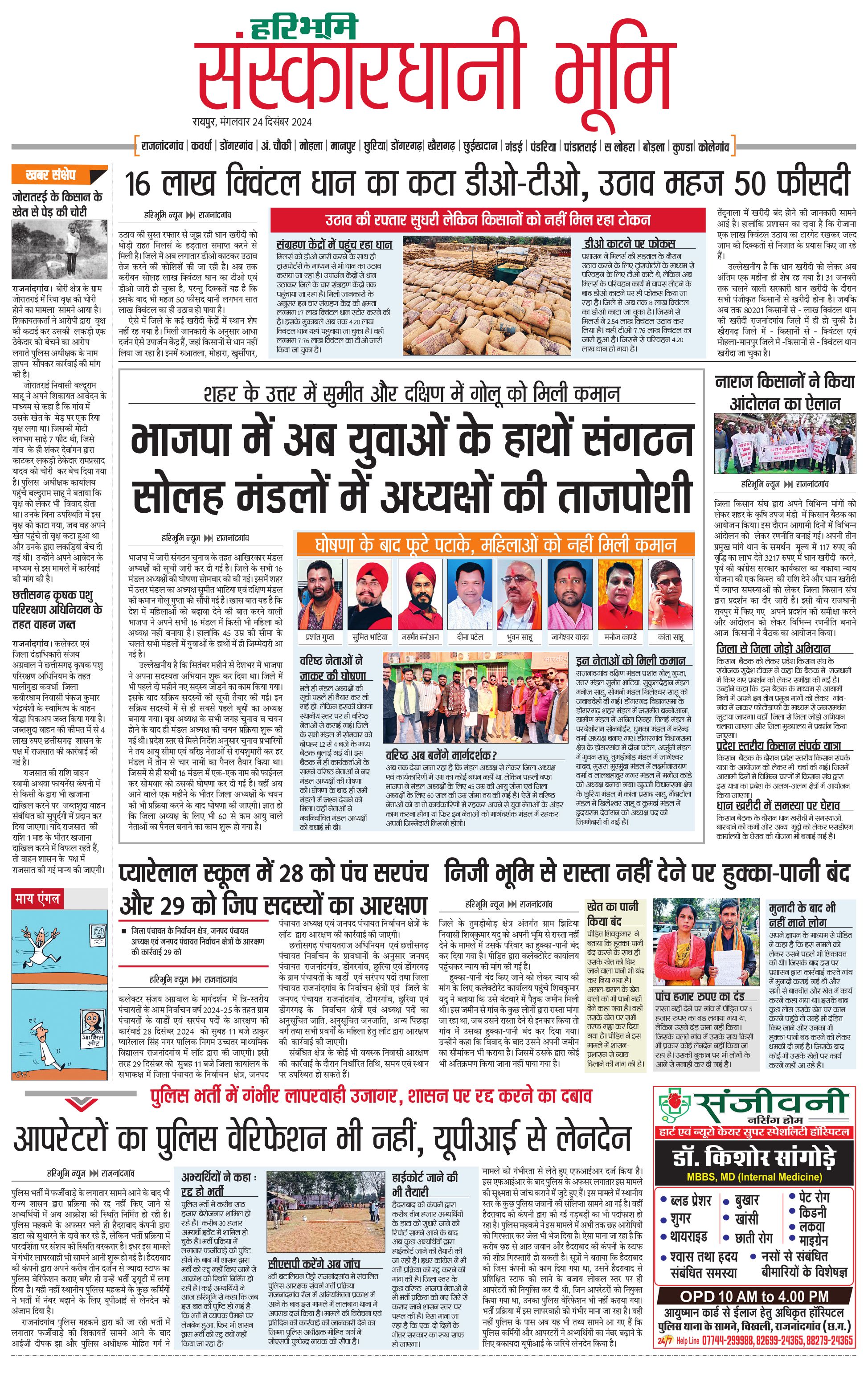 संस्कारधानी भूमि - 24 Dec 2024 - - Page 1