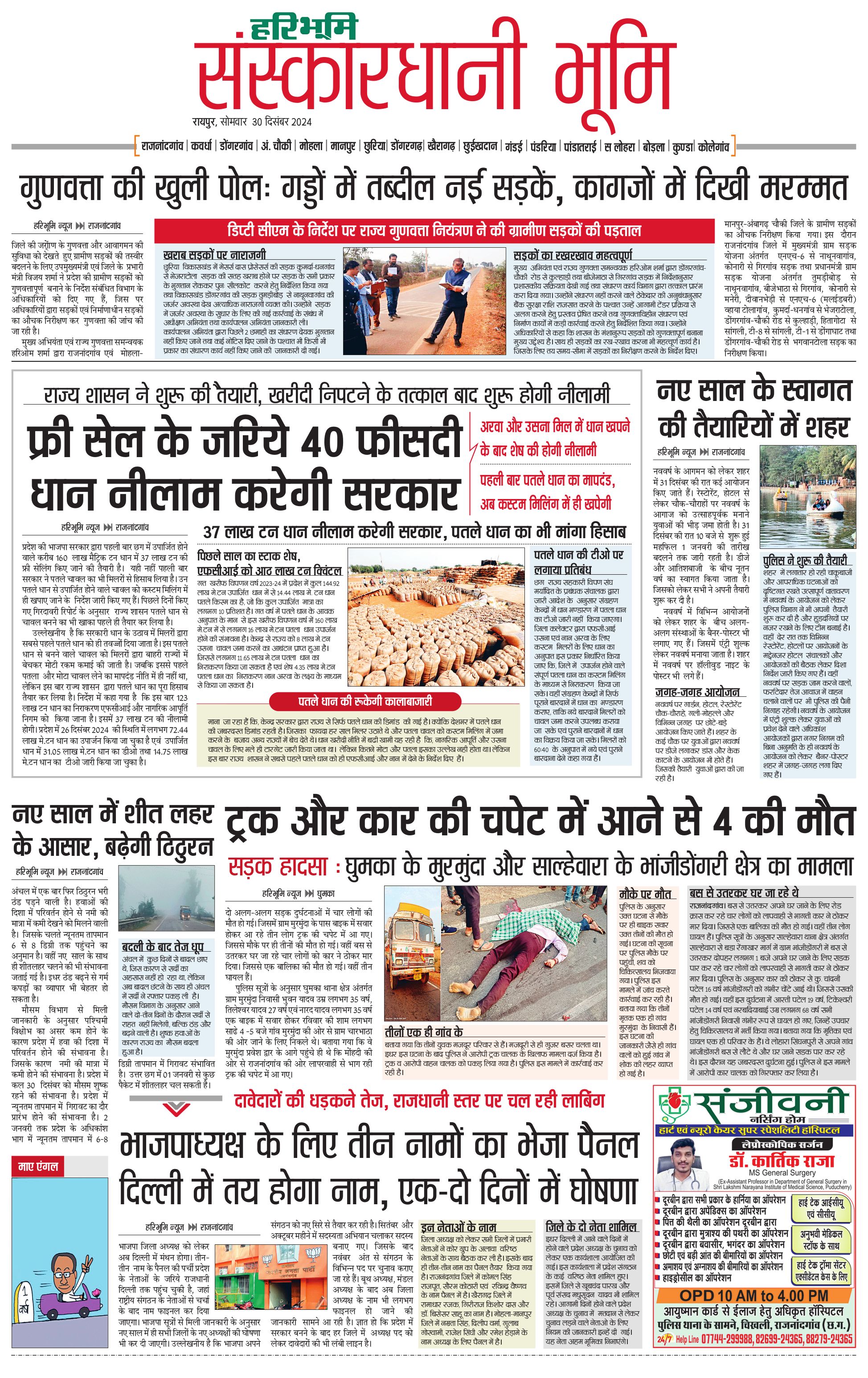 संस्कारधानी भूमि - 30 Dec 2024 - - Page 1