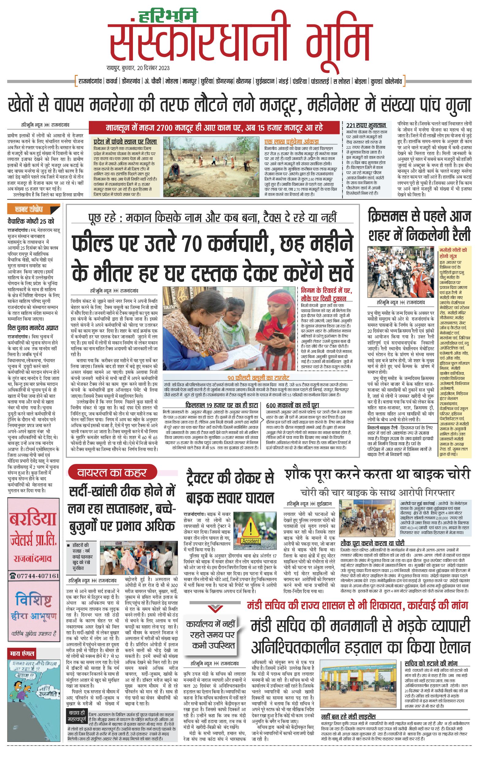 संस्कारधानी भूमि - 20 Dec 2023 - - Page 1