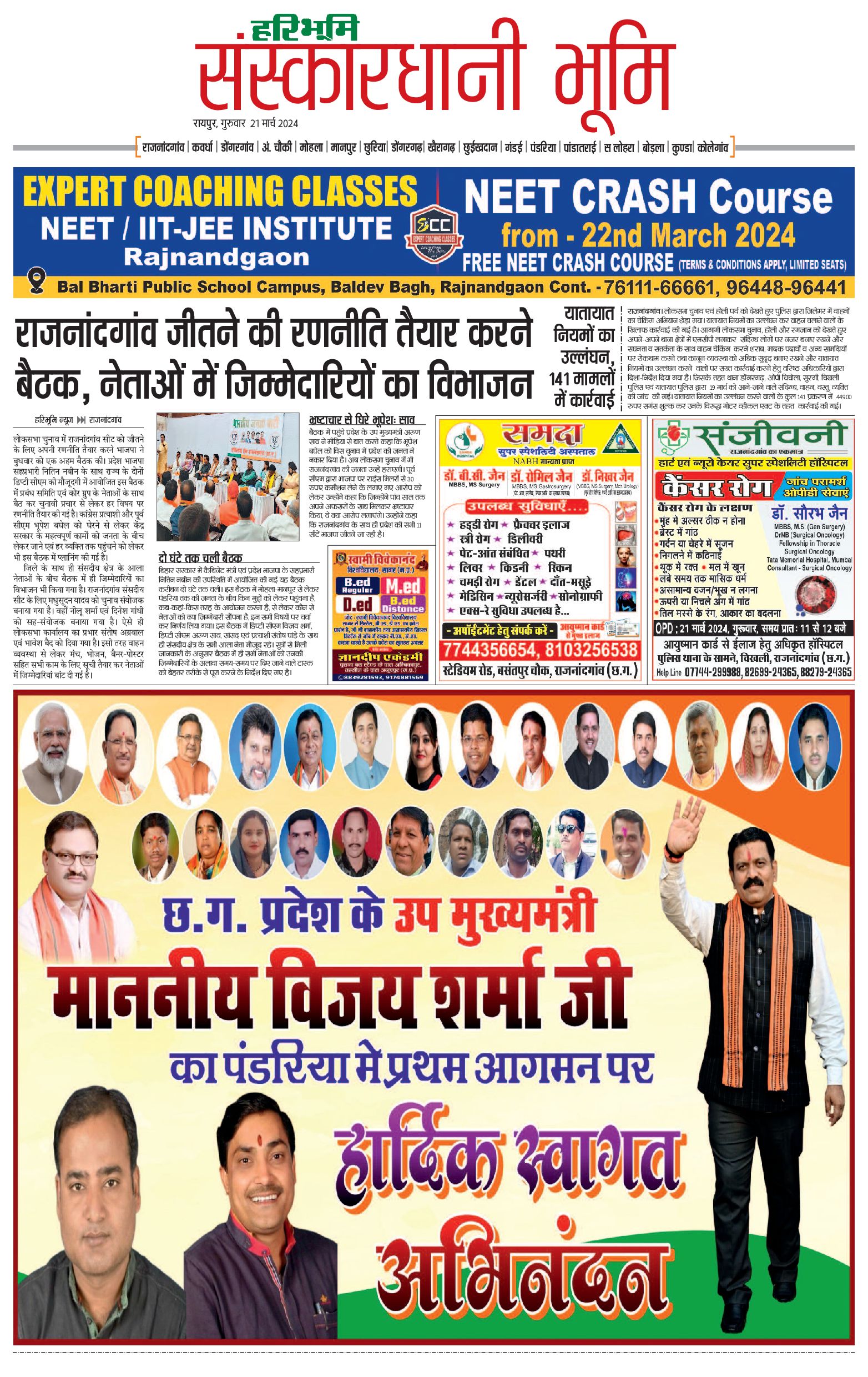 संस्कारधानी भूमि - 21 Mar 2024 - - Page 1