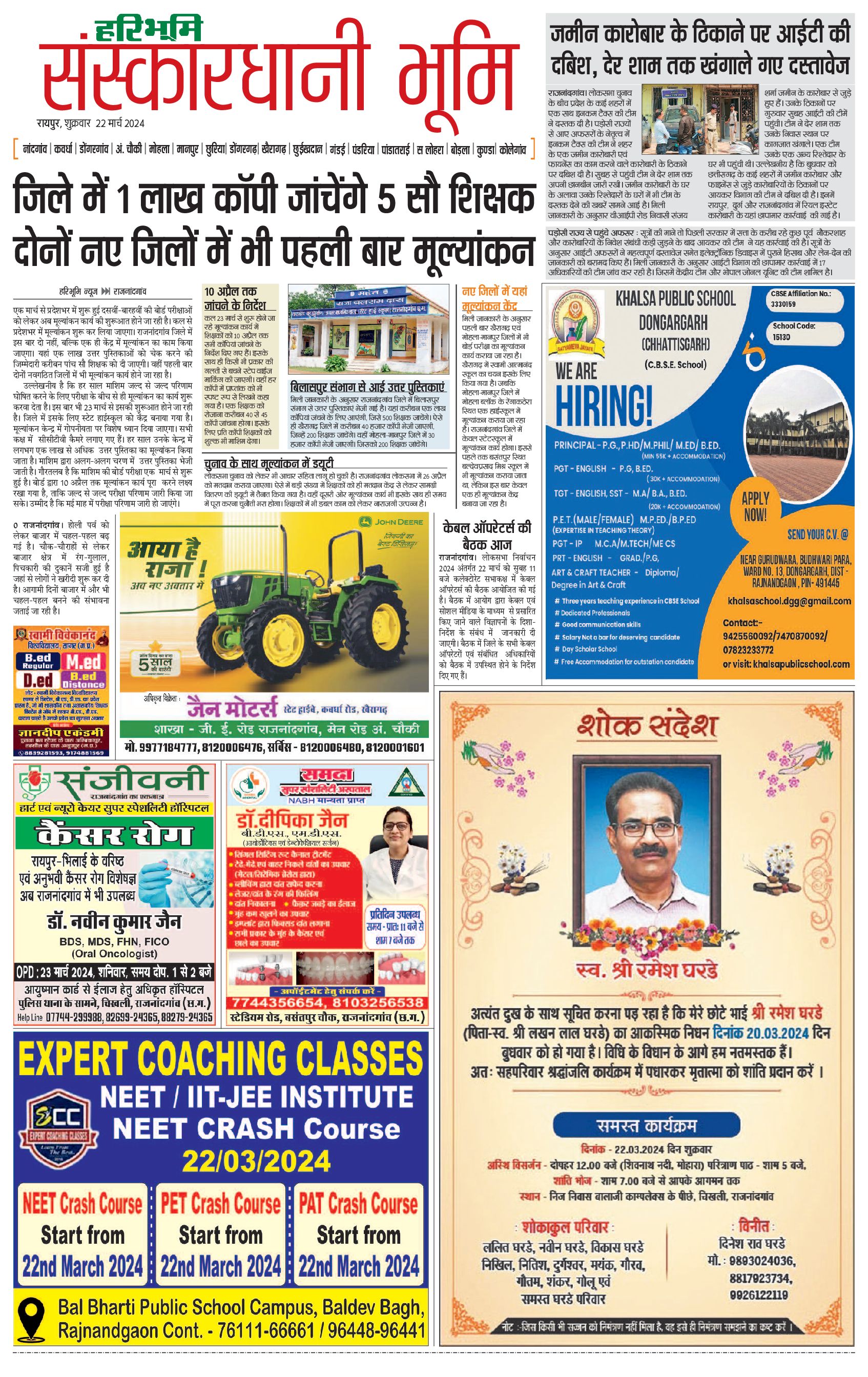 संस्कारधानी भूमि - 22 Mar 2024 - - Page 1