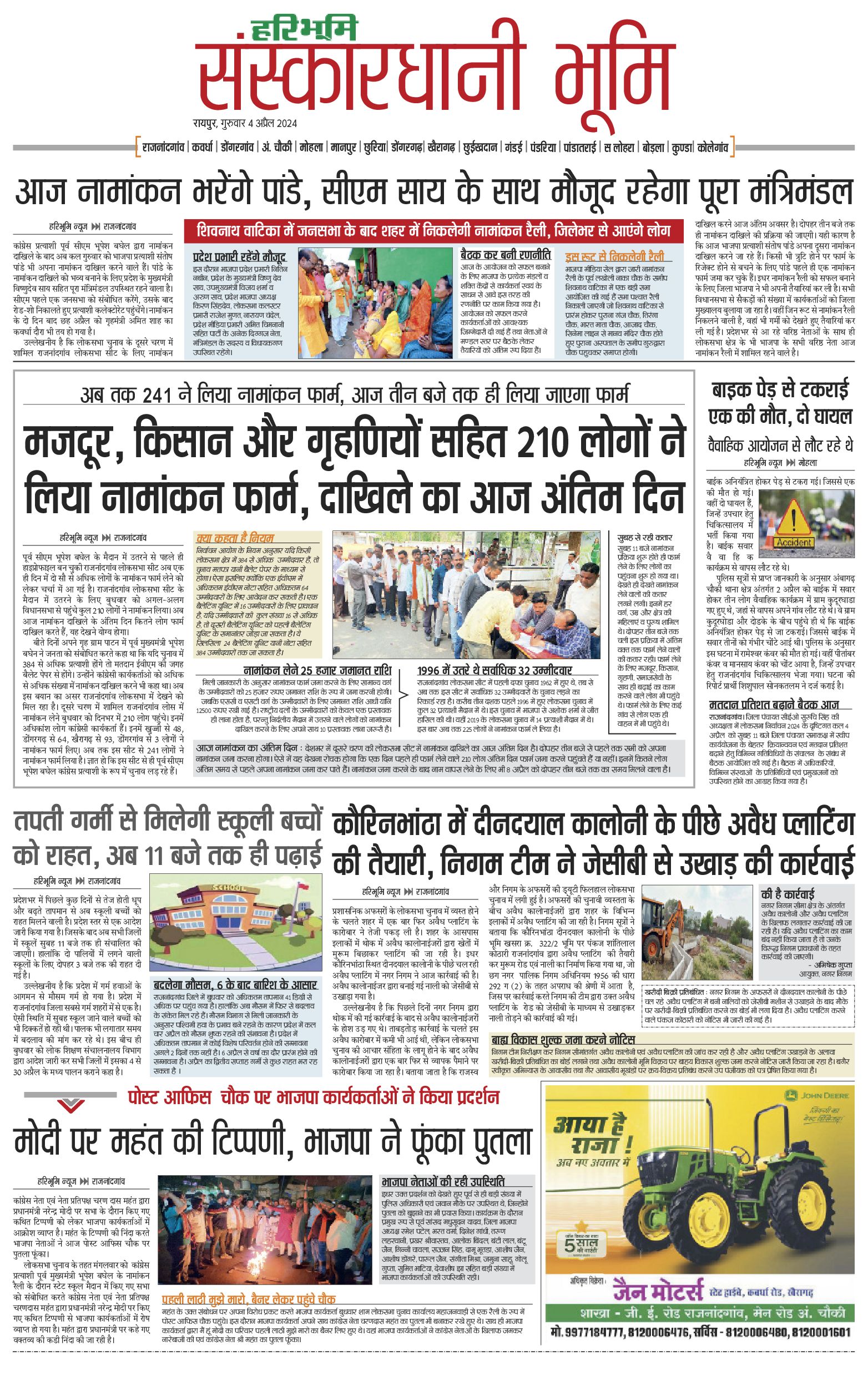 संस्कारधानी भूमि - 04 Apr 2024 - - Page 1