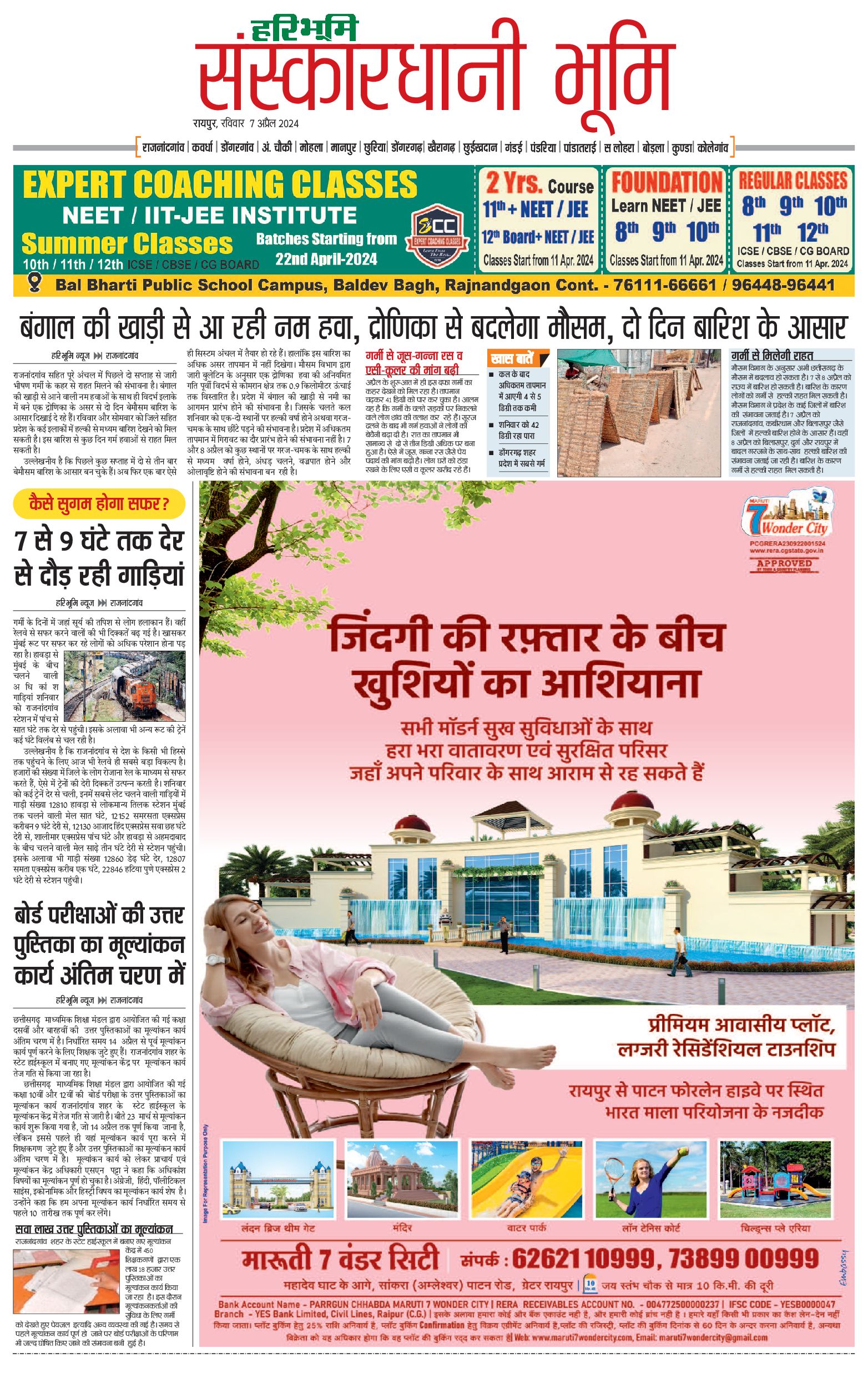 संस्कारधानी भूमि - 07 Apr 2024 - - Page 1