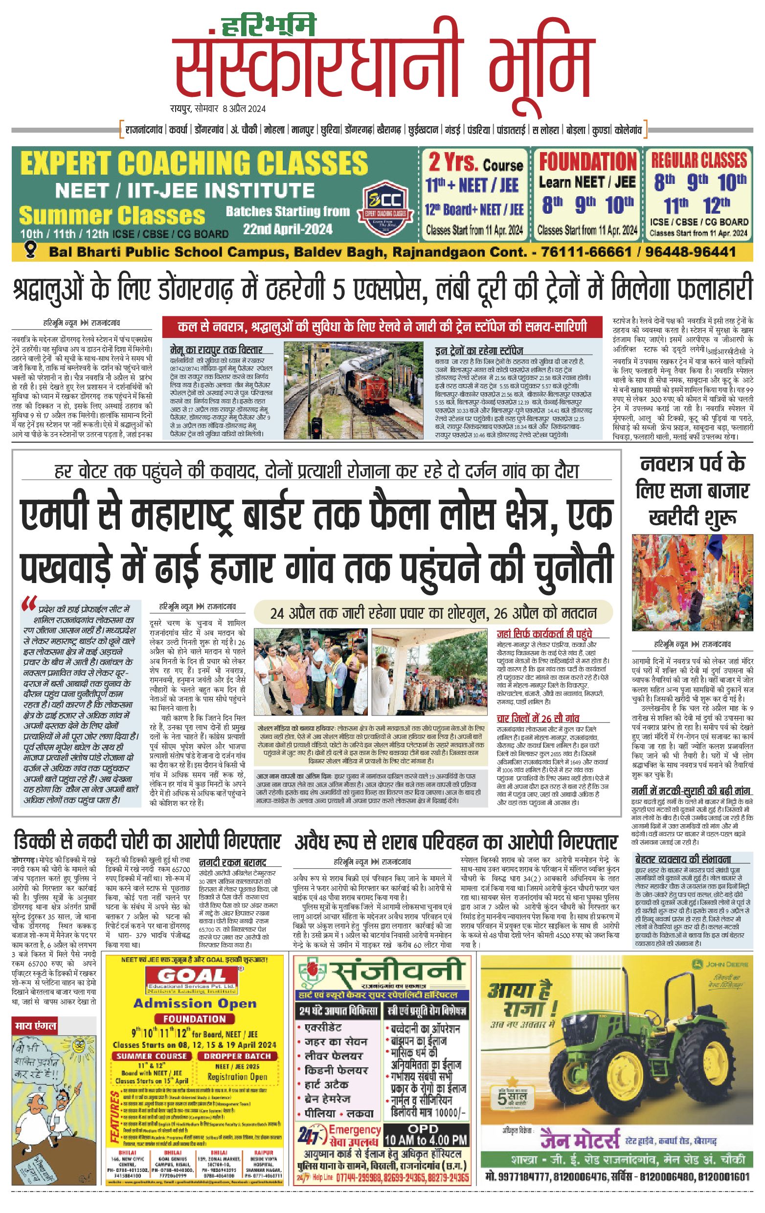 संस्कारधानी भूमि - 08 Apr 2024 - - Page 1