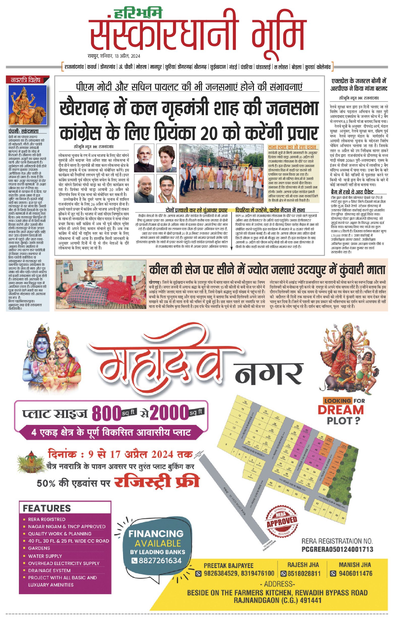संस्कारधानी भूमि - 13 Apr 2024 - - Page 1