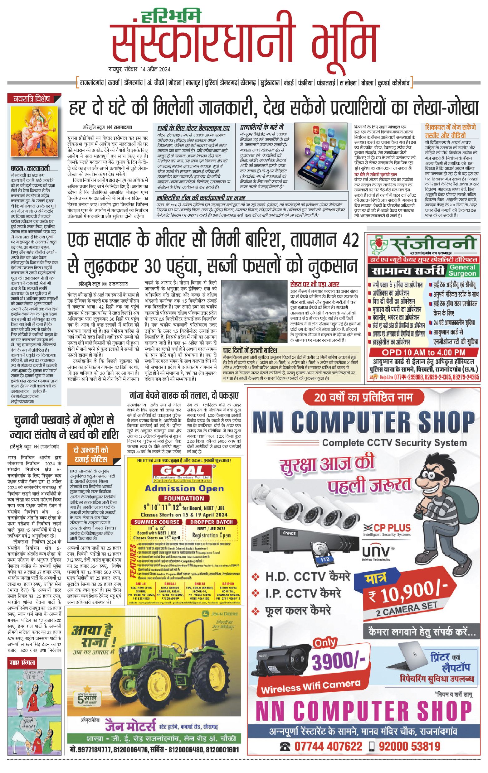 संस्कारधानी भूमि - 14 Apr 2024 - - Page 1