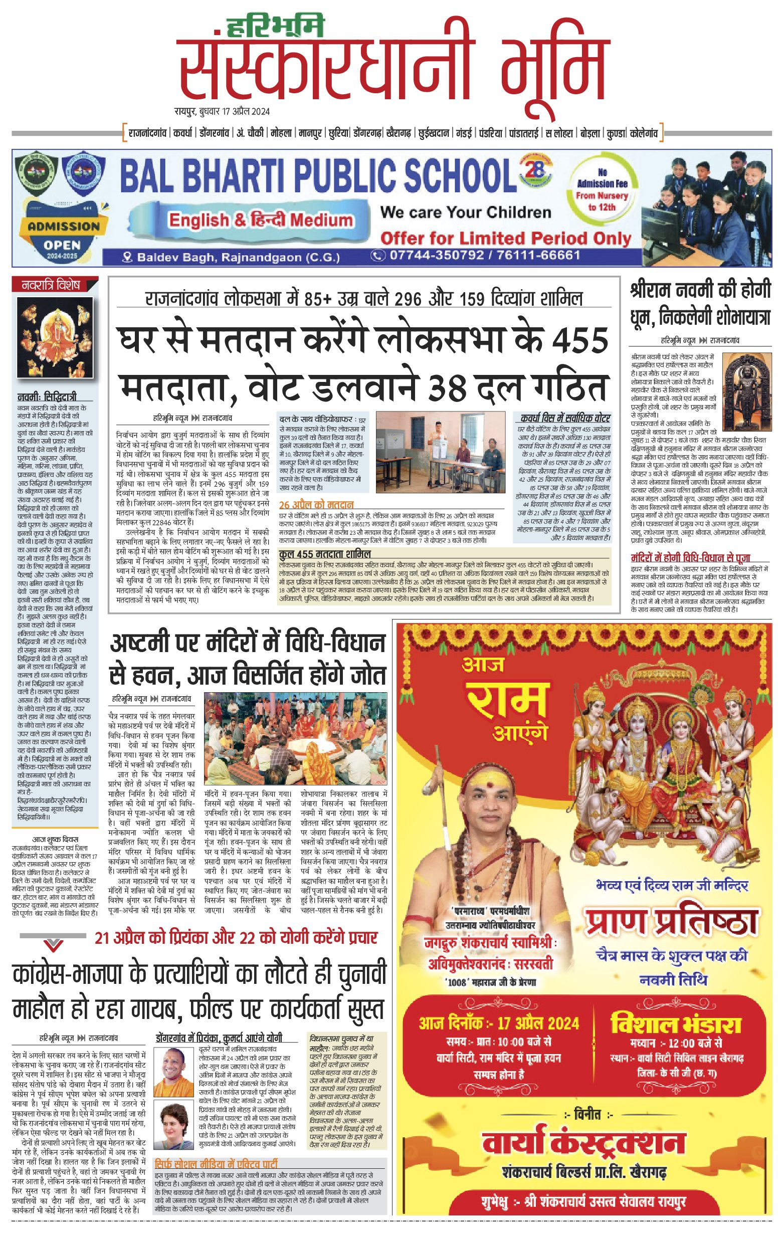 संस्कारधानी भूमि - 17 Apr 2024 - - Page 1