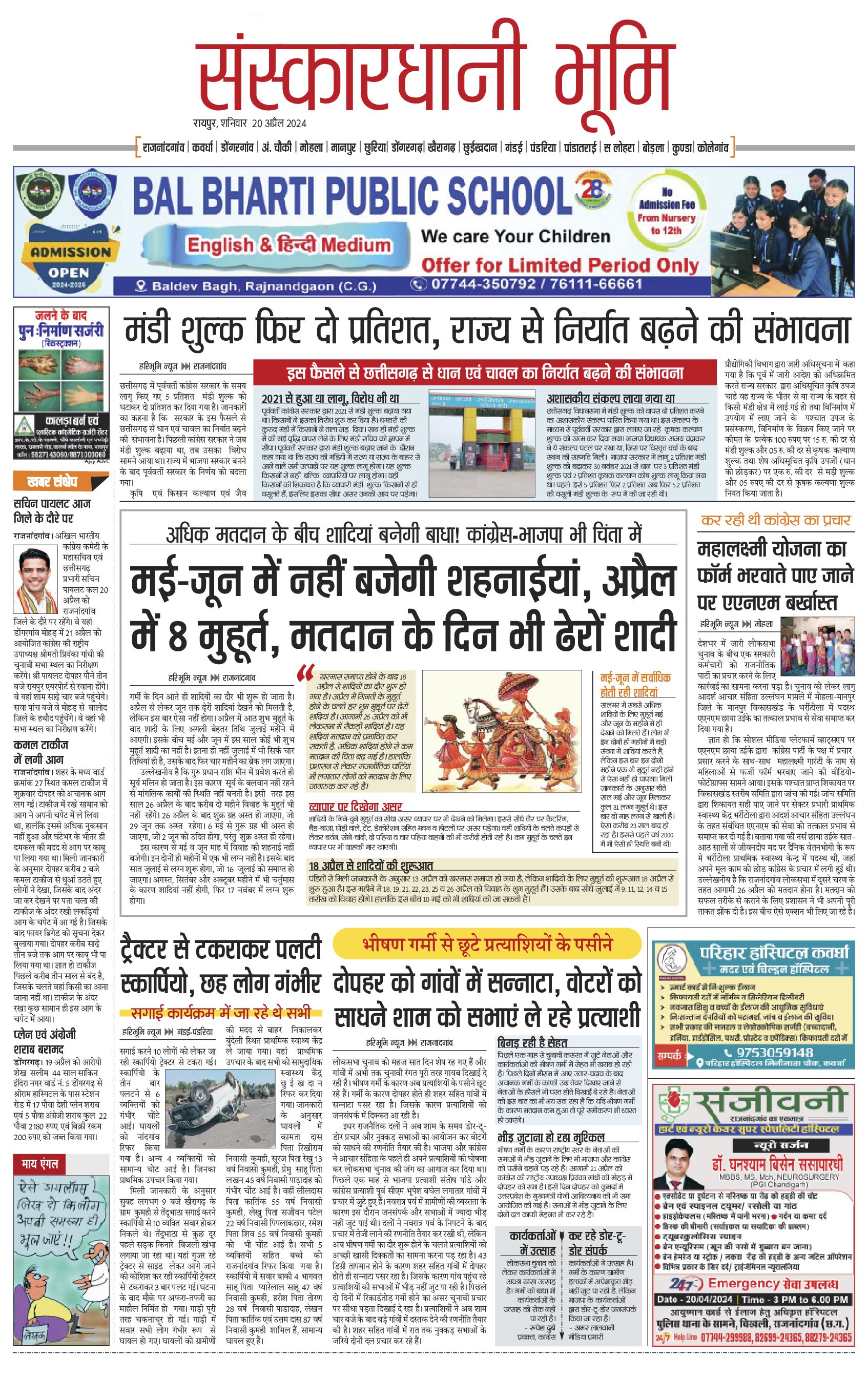 संस्कारधानी भूमि - 20 Apr 2024 - - Page 1