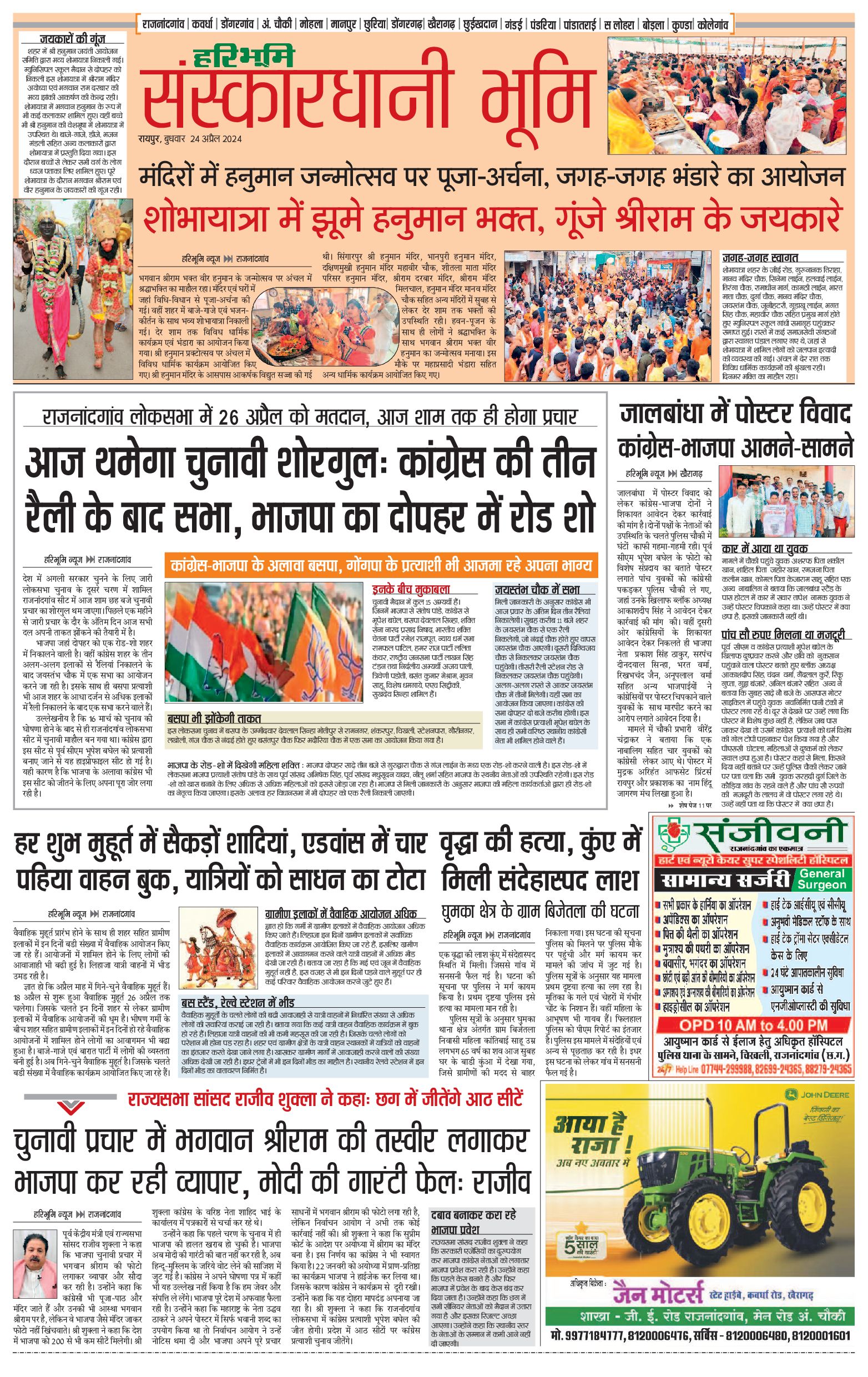 संस्कारधानी भूमि - 24 Apr 2024 - - Page 1