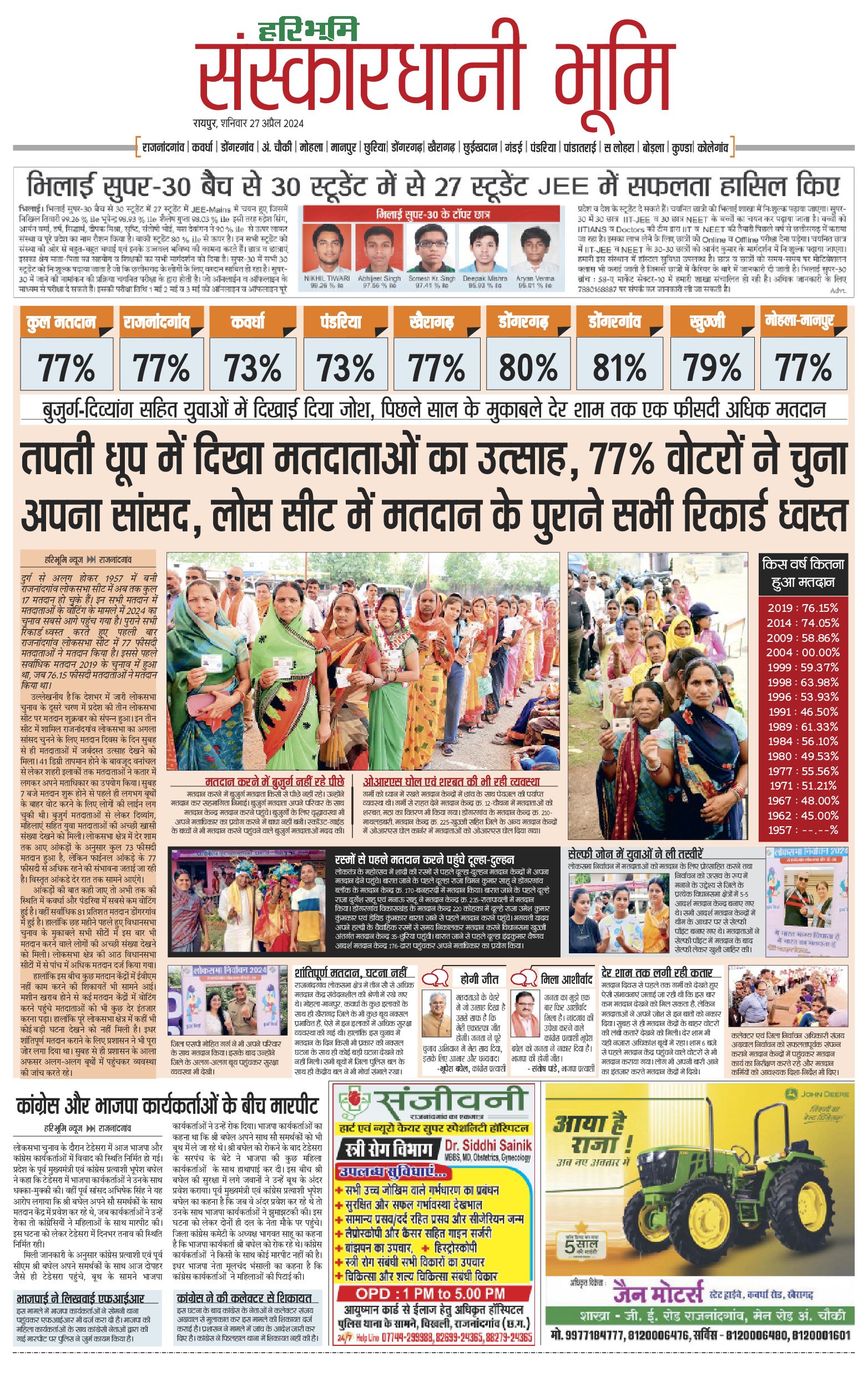संस्कारधानी भूमि - 27 Apr 2024 - - Page 1