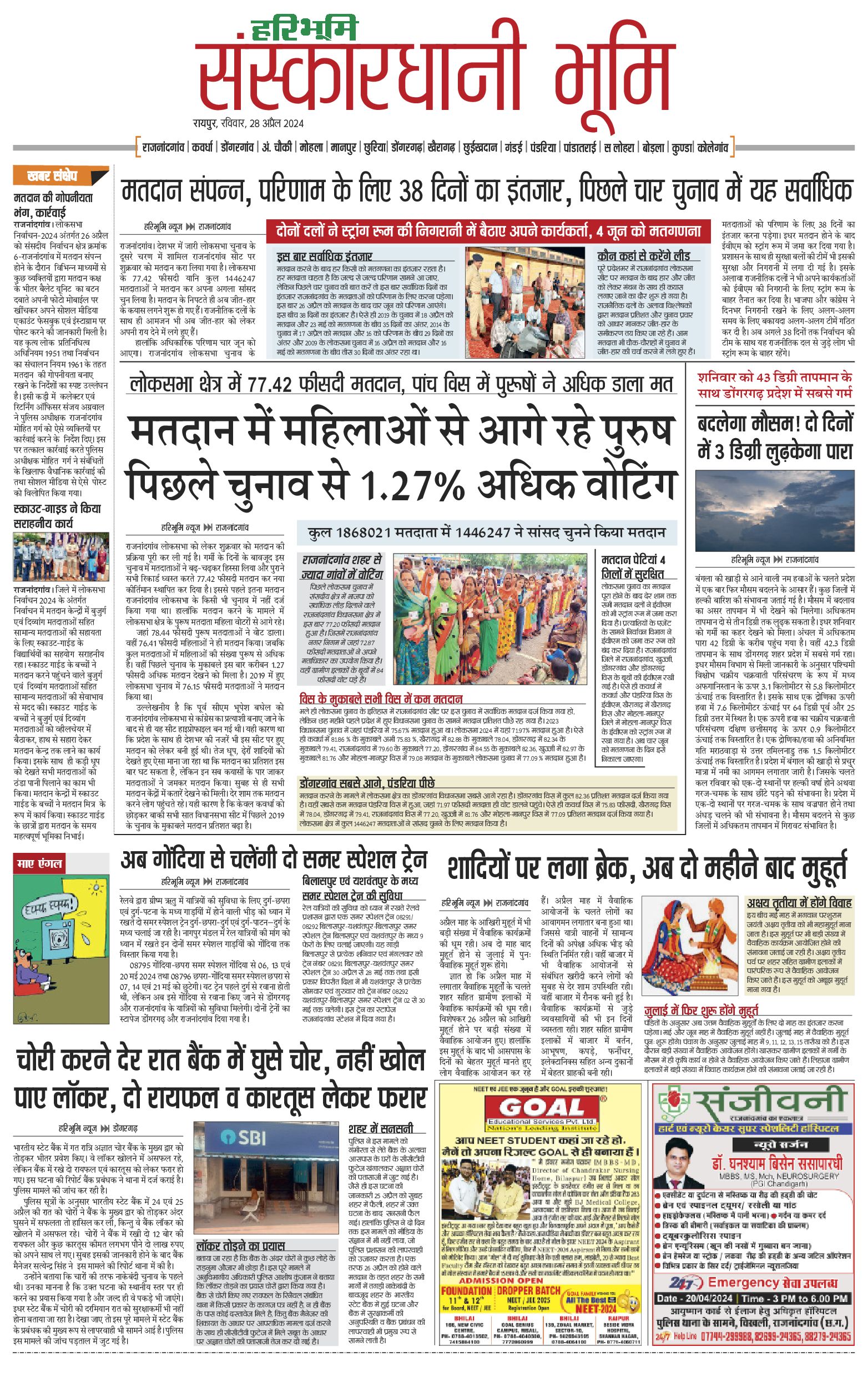 संस्कारधानी भूमि - 28 Apr 2024 - - Page 1
