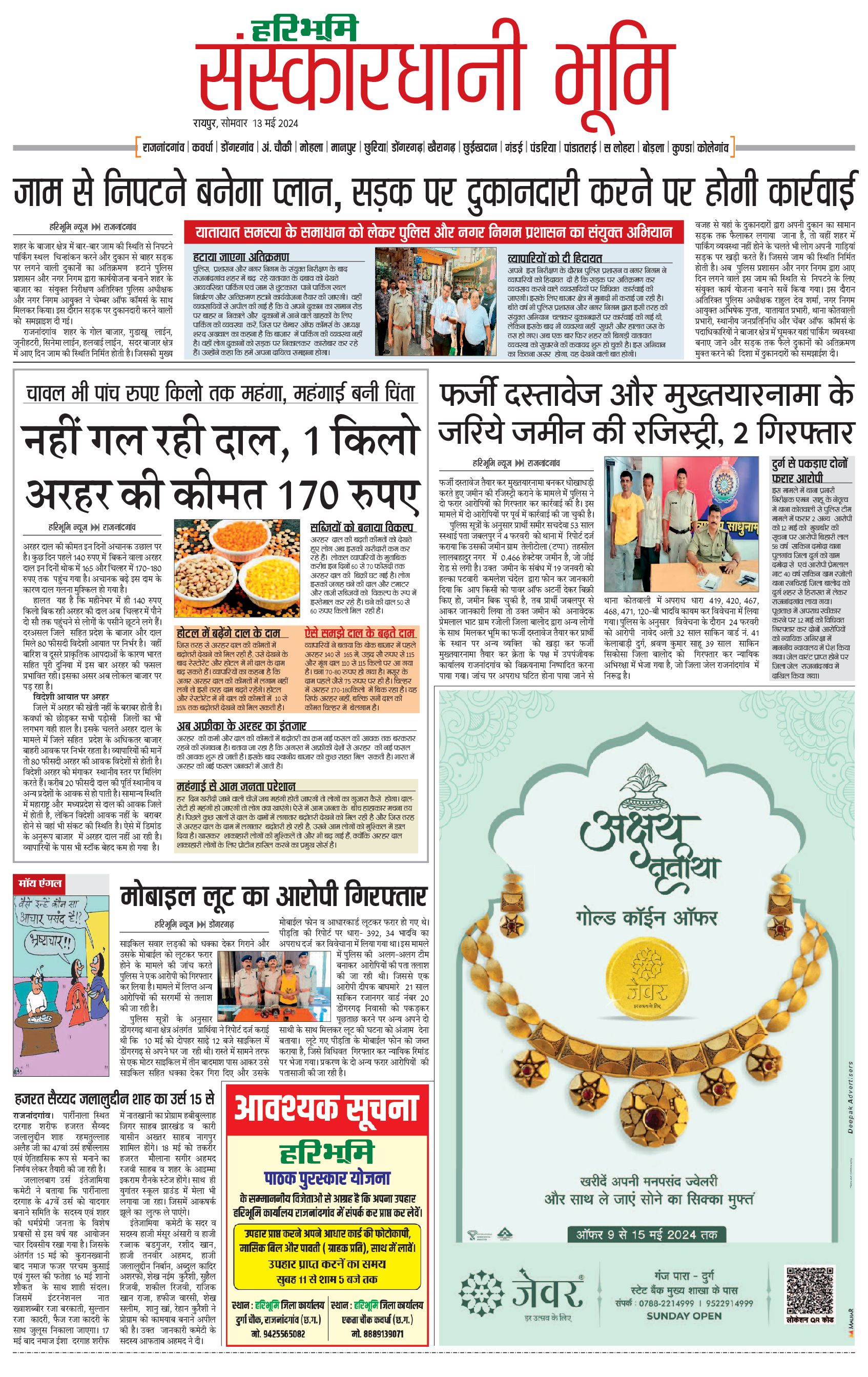 संस्कारधानी भूमि - 13 May 2024 - - Page 1