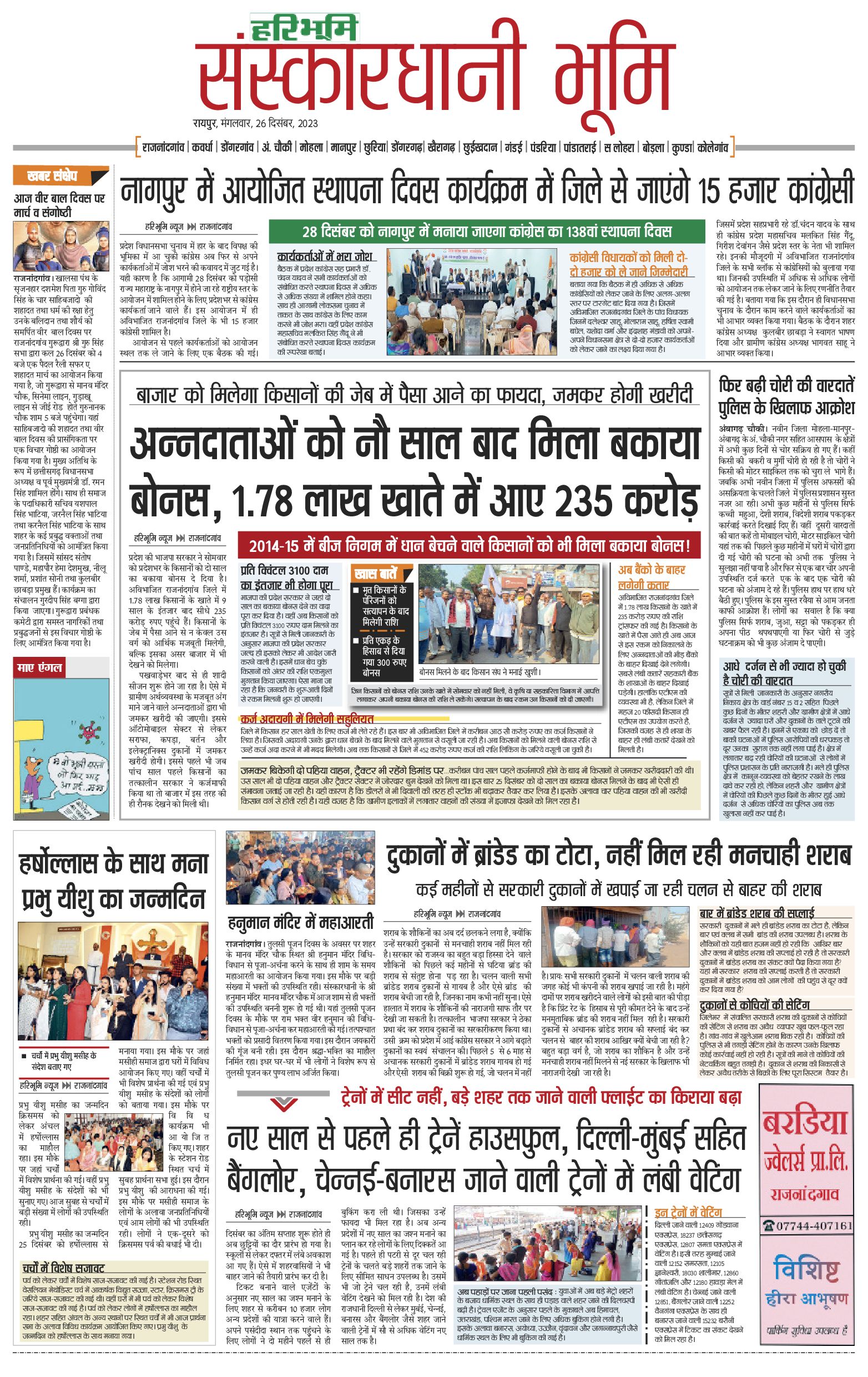संस्कारधानी भूमि - 26 Dec 2023 - - Page 1