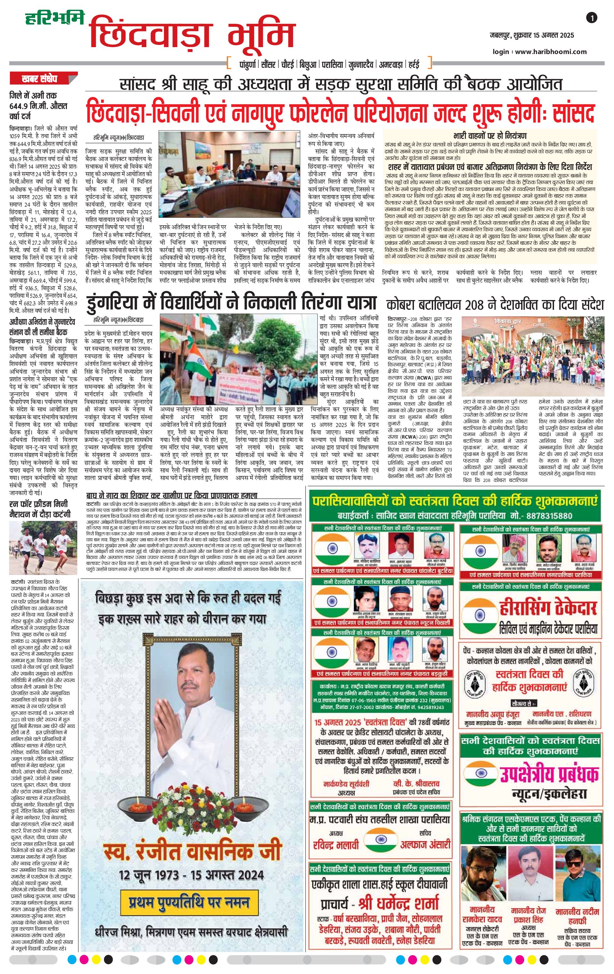 सतपुड़ा भूमि - 15 Aug 2025 - - Page 1