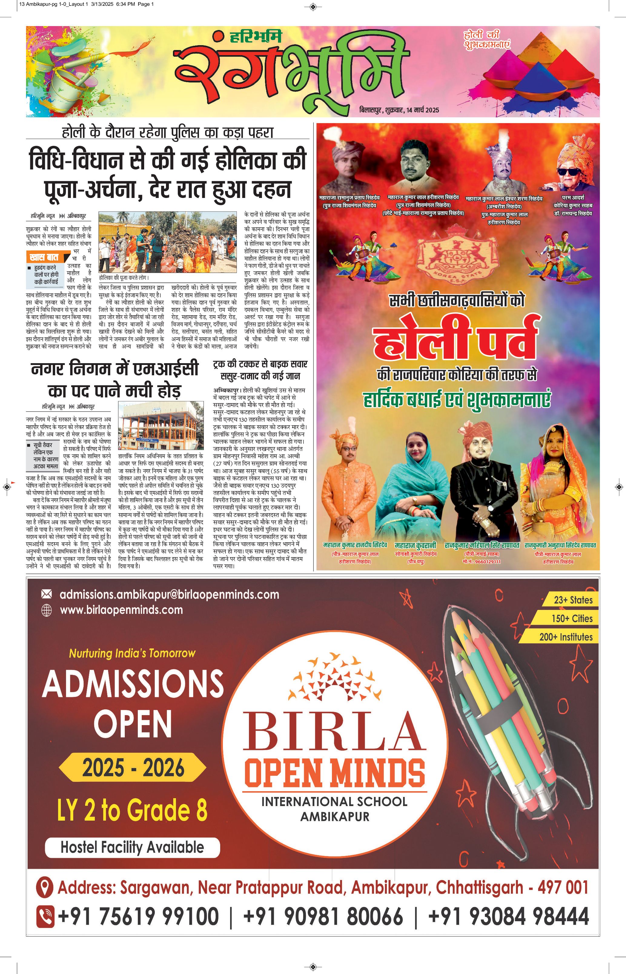 सरगुजा भूमि - 14 Mar 2025 - - Page 1