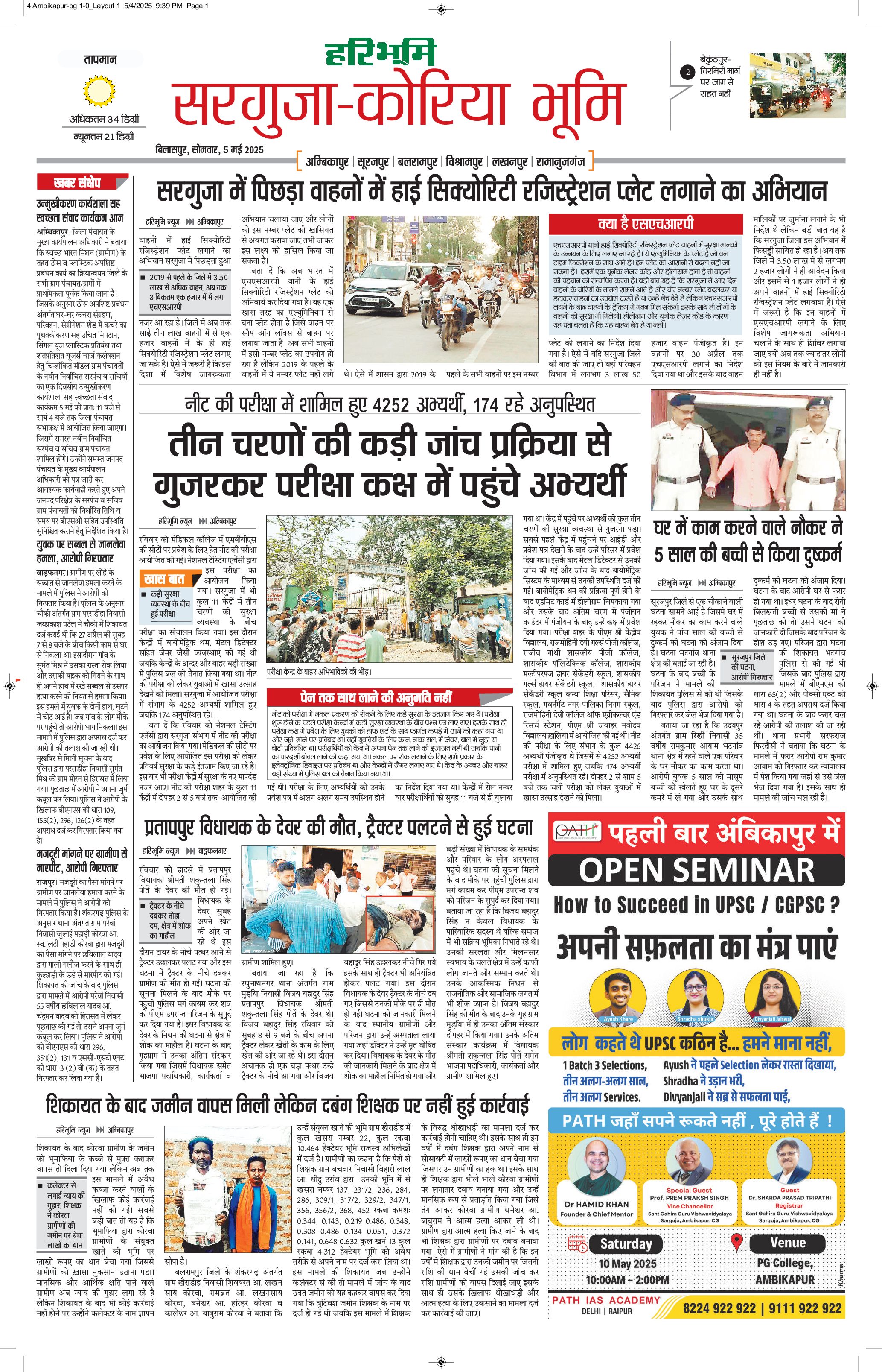 सरगुजा भूमि - 05 May 2025 - - Page 1