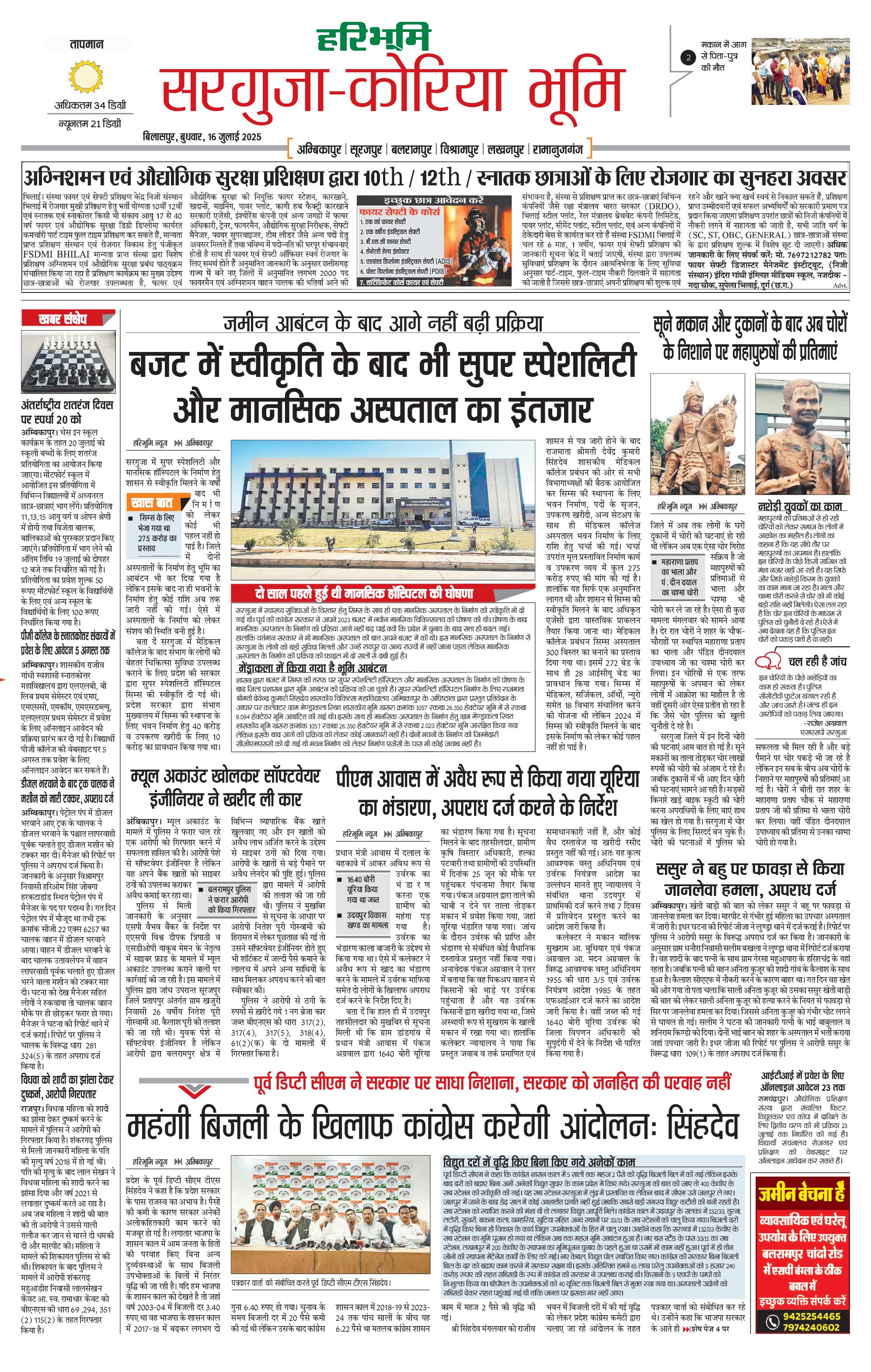 सरगुजा भूमि - 16 Jul 2025 - - Page 1
