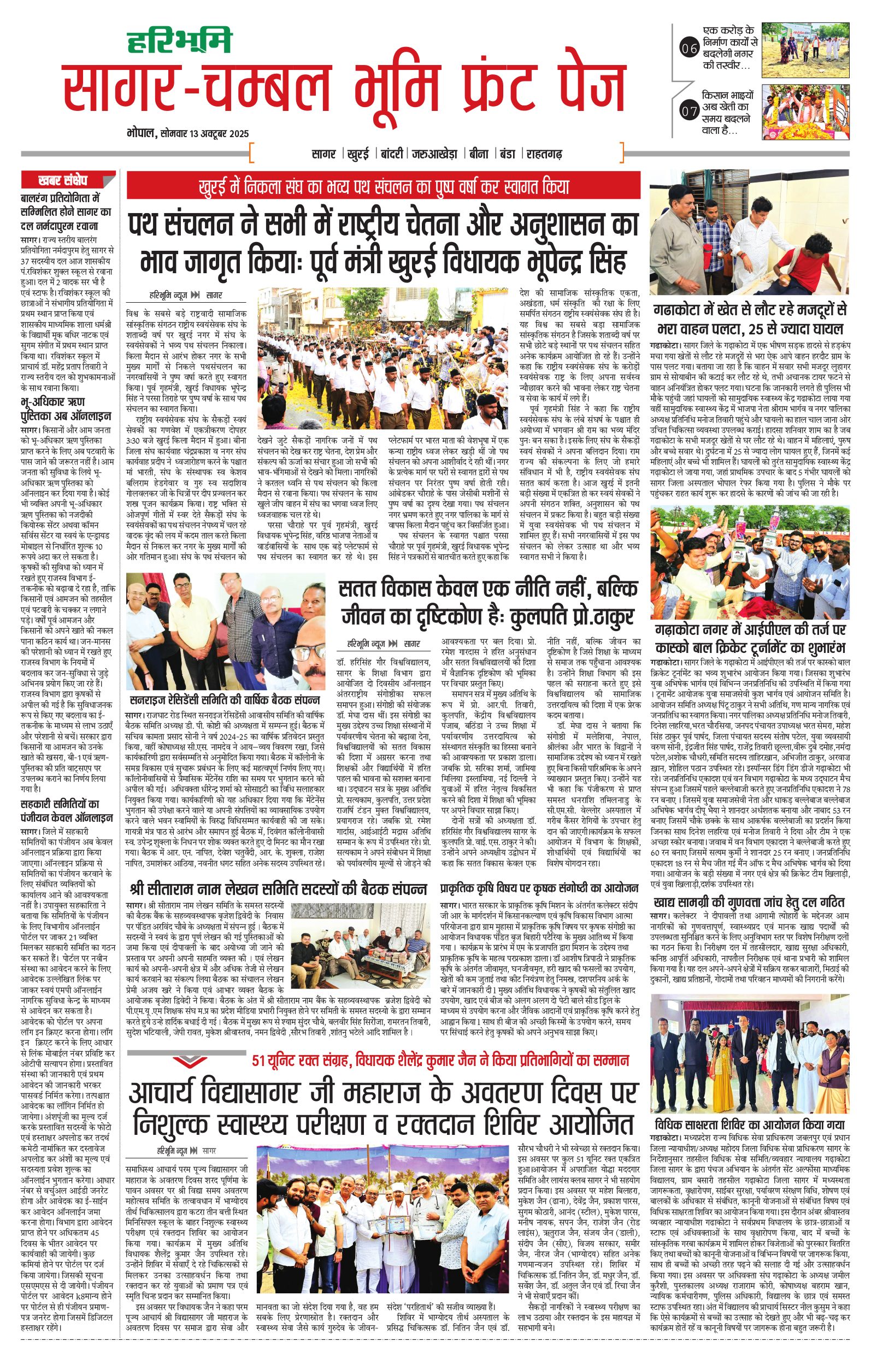 सागर-चम्बल भूमि - 13 Oct 2025 - - Page 1