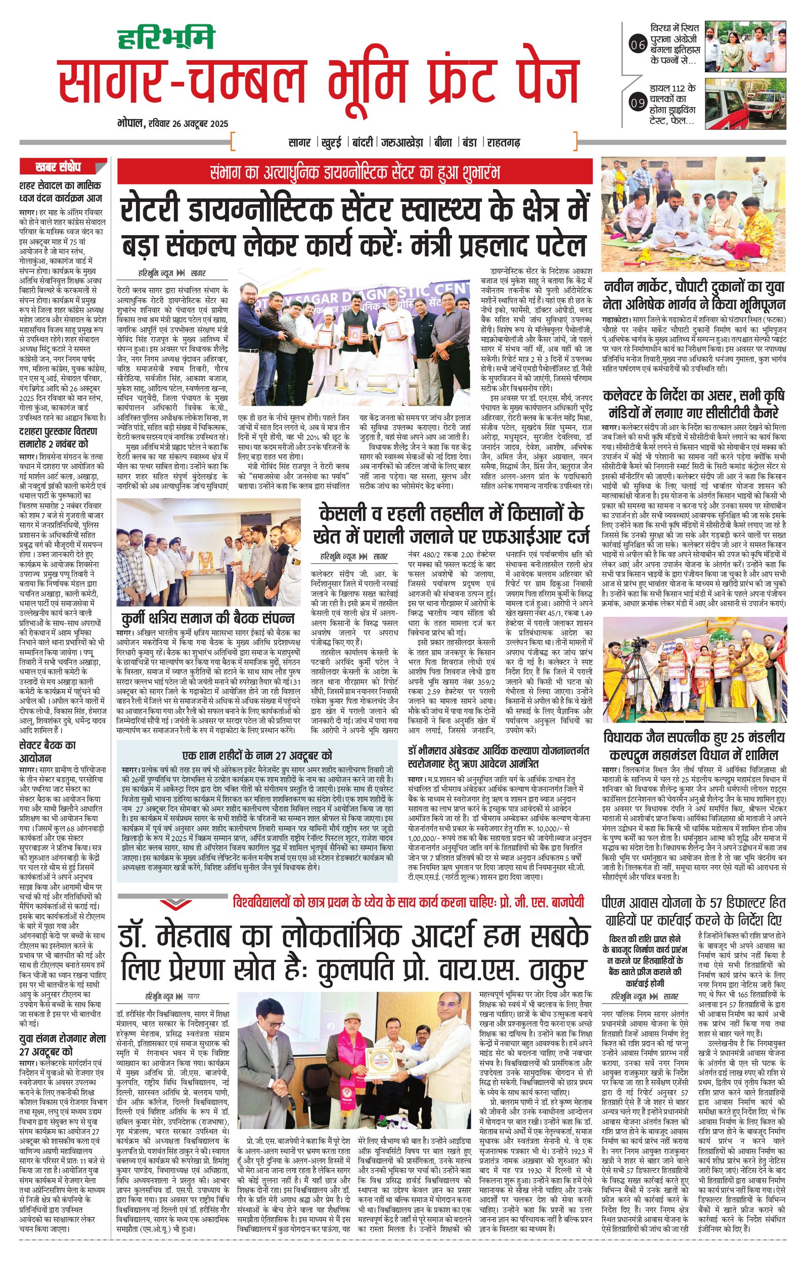 सागर-चम्बल भूमि - 26 Oct 2025 - - Page 1