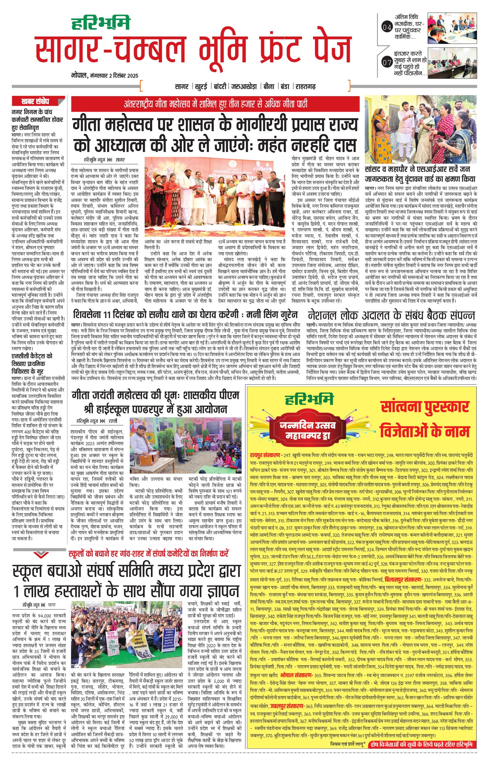सागर-चम्बल भूमि - 02 Dec 2025 - - Page 1