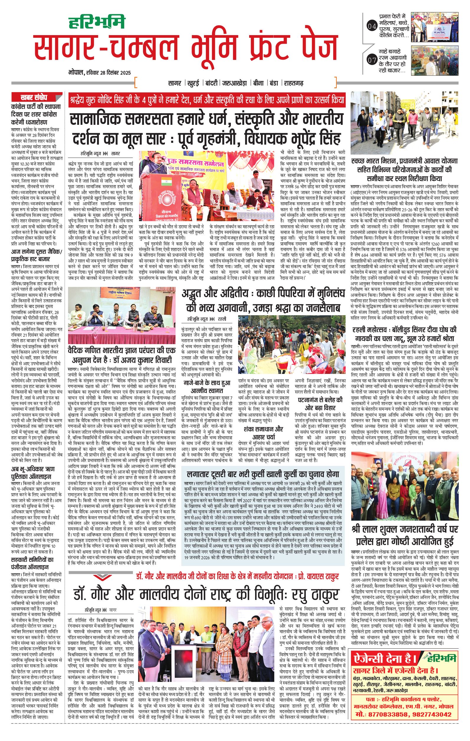 सागर-चम्बल भूमि - 28 Dec 2025 - - Page 1