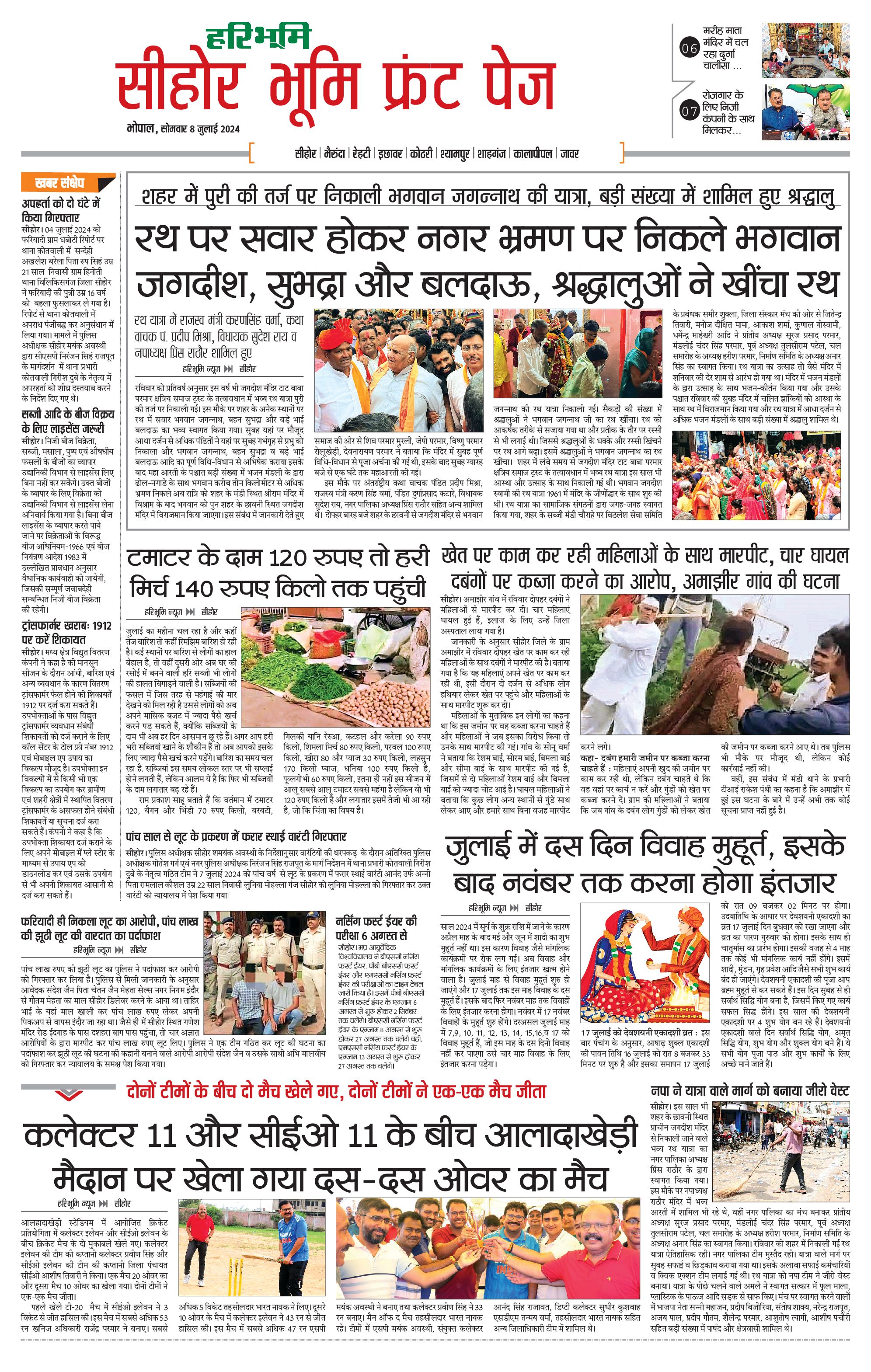 सीहोर मालवा भूमि - 08 Jul 2024 - - Page 1