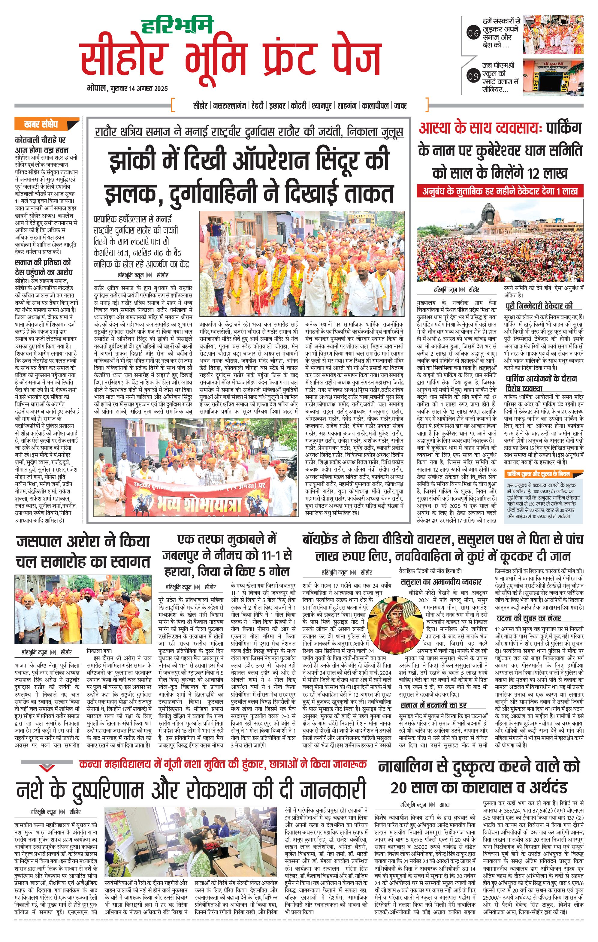 सीहोर मालवा भूमि - 14 Aug 2025 - - Page 1