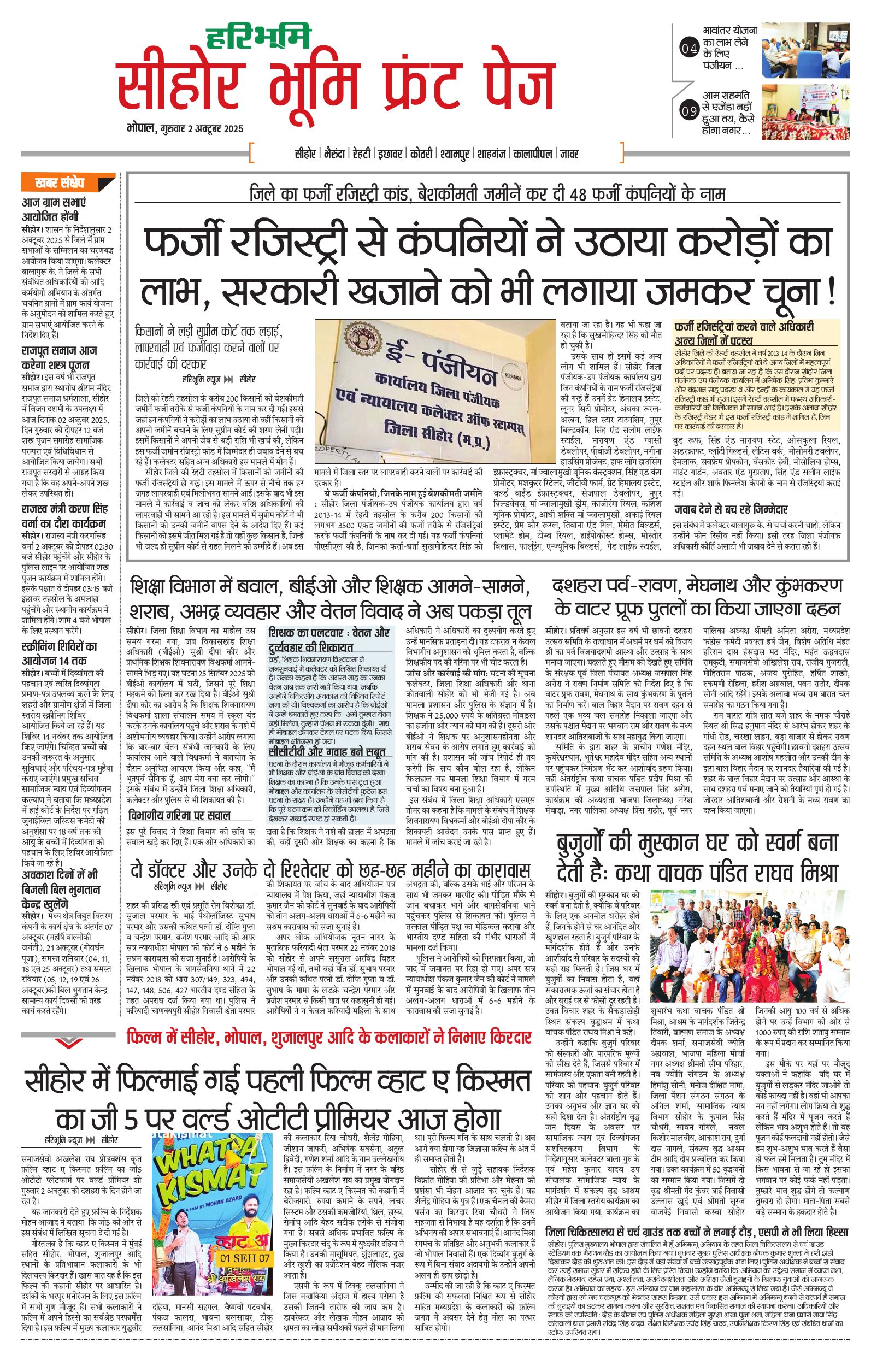 सीहोर मालवा भूमि - 02 Oct 2025 - - Page 1