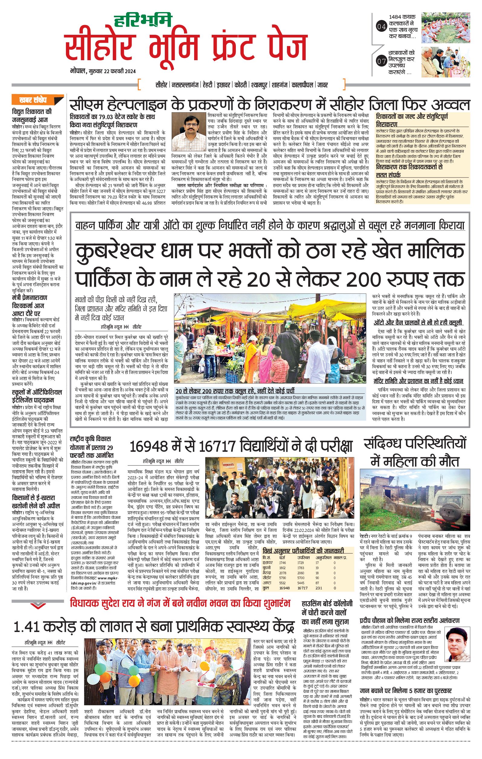 सीहोर मालवा भूमि - 22 Feb 2024 - - Page 1