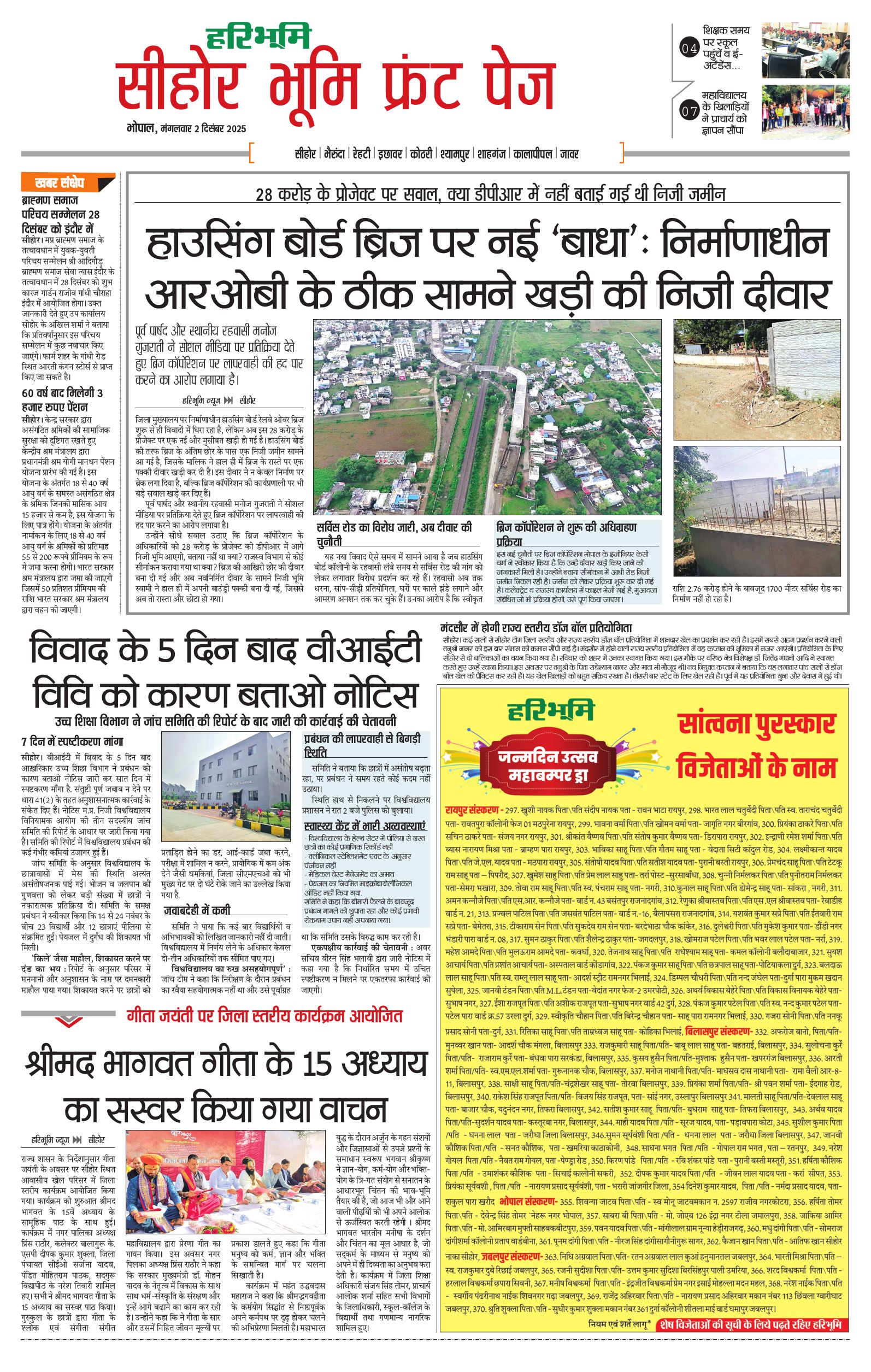 सीहोर मालवा भूमि - 02 Dec 2025 - - Page 1