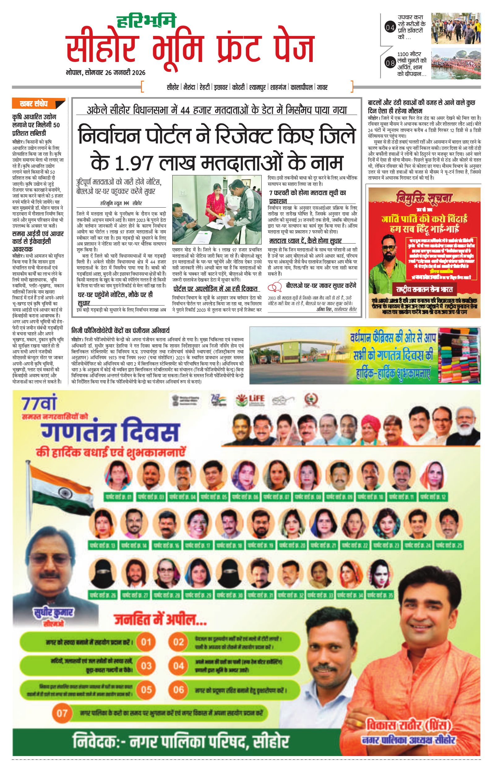 सीहोर मालवा भूमि - 26 Jan 2026 - - Page 1