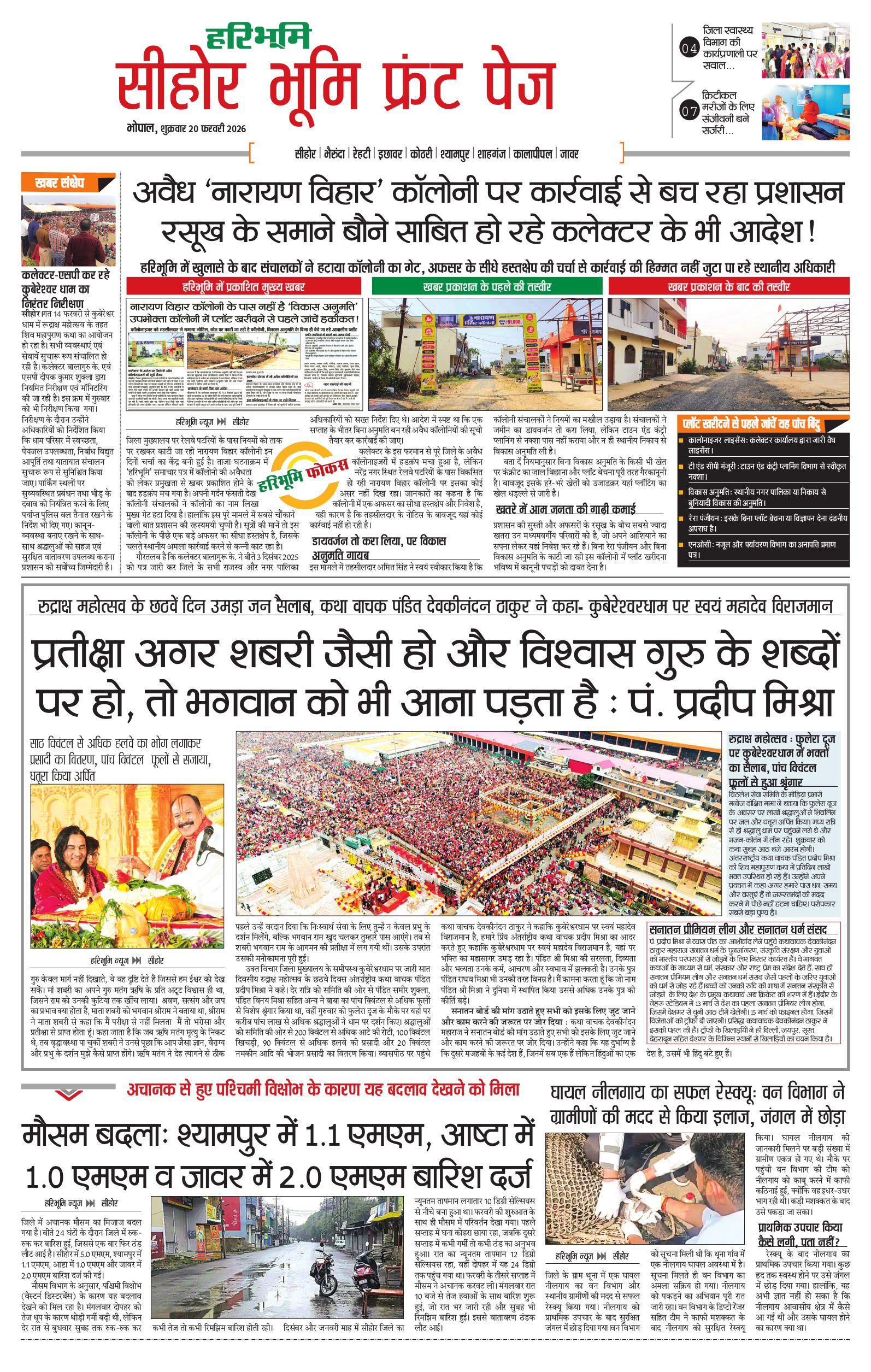 सीहोर मालवा भूमि - 20 Feb 2026 - - Page 1